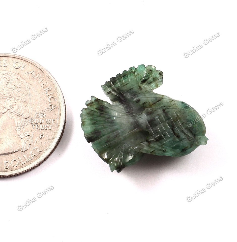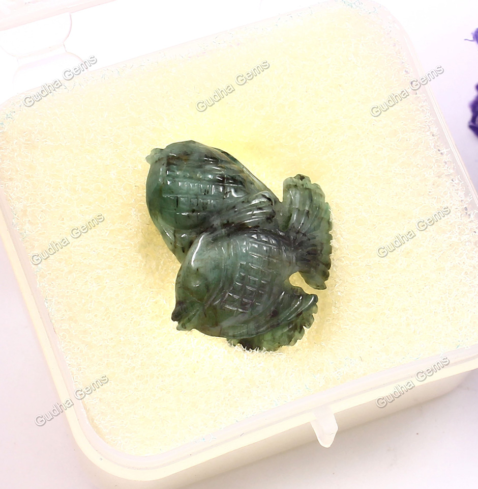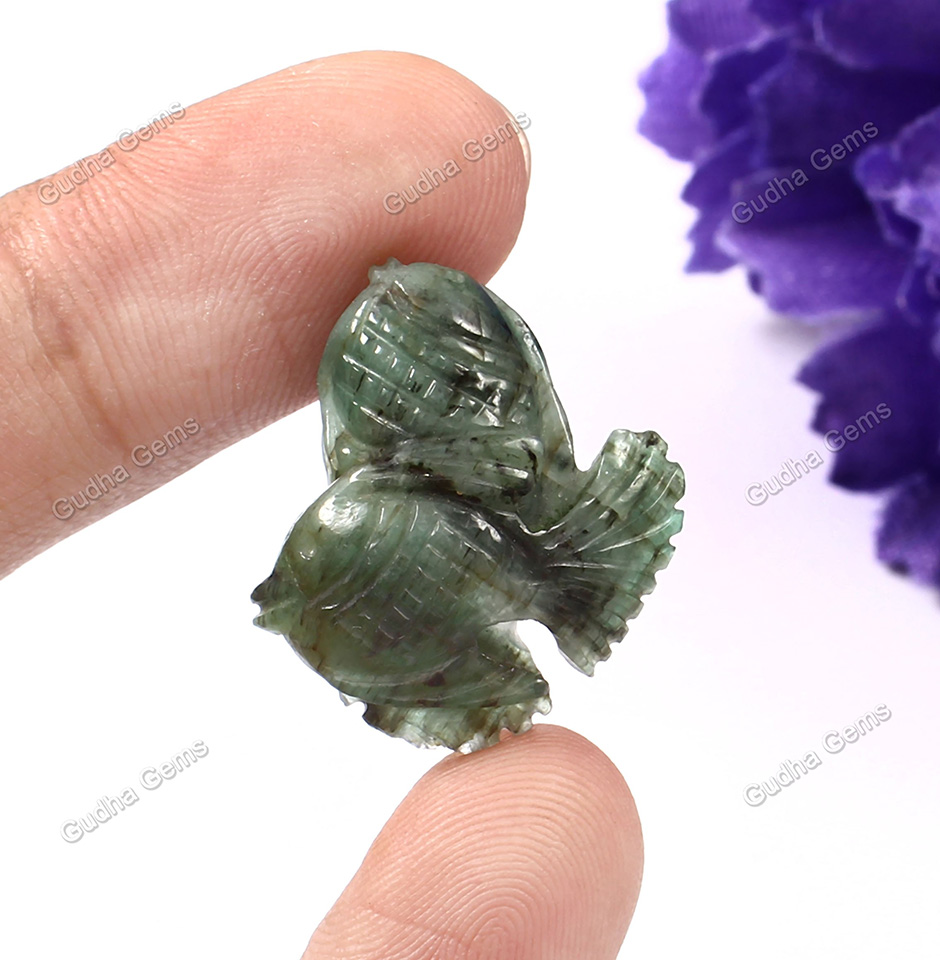 14.20 CRT Antique Dual Fish Carved Emerald Gemstone