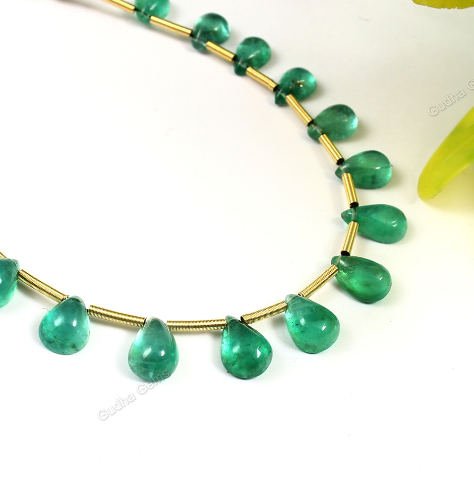 The smooth, polished surface of the cabochon brings out the rich green hues of the stone, while the pear shape accentuates the depth and dimension of the stone.At 15.50 carats, this cabochon is a substantial size that makes it ideal for use in high-end jewelry designs. In addition to its aesthetic appeal, this emerald cabochon also boasts impressive physical properties. Emeralds are known for their durability and strength, making them an excellent choice for jewelry that will be worn and enjoyed for years to come. And with its pear shape layout, this cabochon is also easy to set and secure in a variety of jewelry settings.At Gudha Gems, we take pride in sourcing only the highest quality gemstones and cabochons.Buy online precious gemstone at best prices at Gudha gems. Each piece is hand-selected and inspected for quality and authenticity, ensuring that you receive only the best of the best.Don't miss your chance to own this exquisite gemstone – order yours today from Gudha Gems an Online gemstone supplier in Jaipur, and experience the beauty and luxury of the finest Zambian Emeralds!