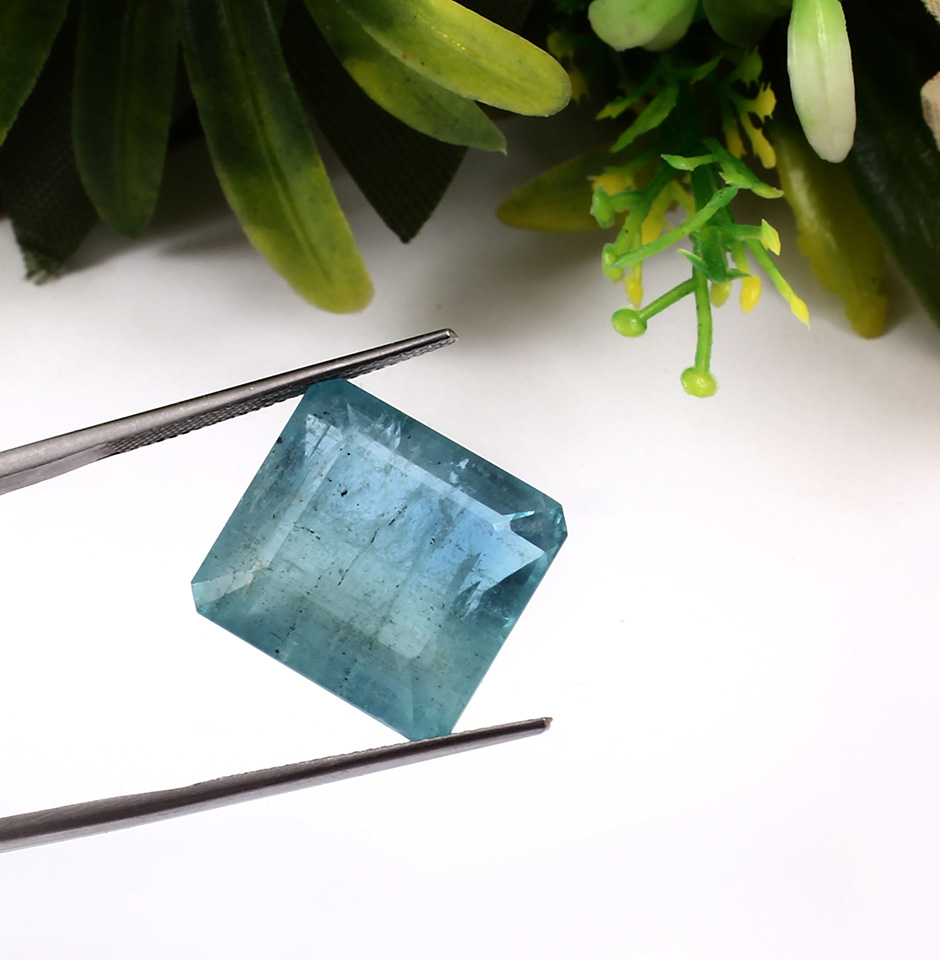 Introducing the stunning 27.10 Carat Precious Brilliant Aquamarine Faceted Square Gemstone from Gudha Gems Company. With a carat weight of 27.10 carats, this Aquamarine gemstone is a true statement piece. The size of the stone is 17x16x11 mm, making it a substantial and impressive gemstone that will command attention. The square shape of the stone adds to its uniqueness and sets it apart from more traditional shapes like round or oval.The color of this beautiful shade of blue is characteristic of the finest quality Aquamarine gemstones, and it is sure to catch the eye of anyone who sees it. The brilliance of the stone is enhanced by the expert faceting, which allows light to dance across the surface and create a dazzling display of color and sparkle.