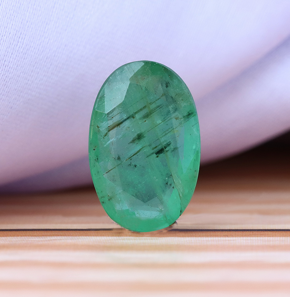 Introducing the stunning 4.5 Cts. Precious Emerald Oval Cut Gemstone from Gudha Gems Company. The gemstone has been carefully cut into an elegant oval shape, which accentuates its natural beauty and allows for optimal light reflection, creating a sparkling and mesmerising effect.The carat weight of this emerald gemstone is 4.5 carats, making it a substantial and valuable addition to any jewellery collection. The size of the gemstone measures 14mm x 9mm x 4.5mm in length, width, and depth, providing ample room for creative and intricate jewellery designs.