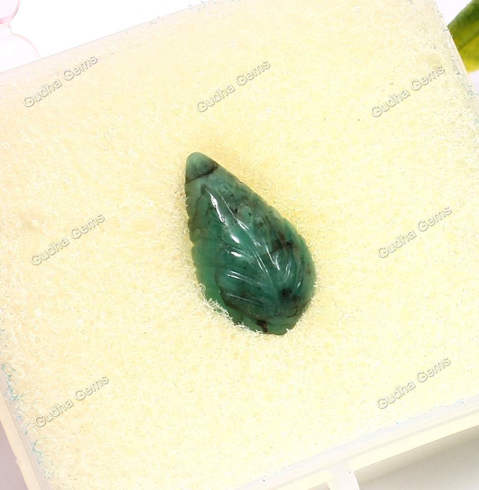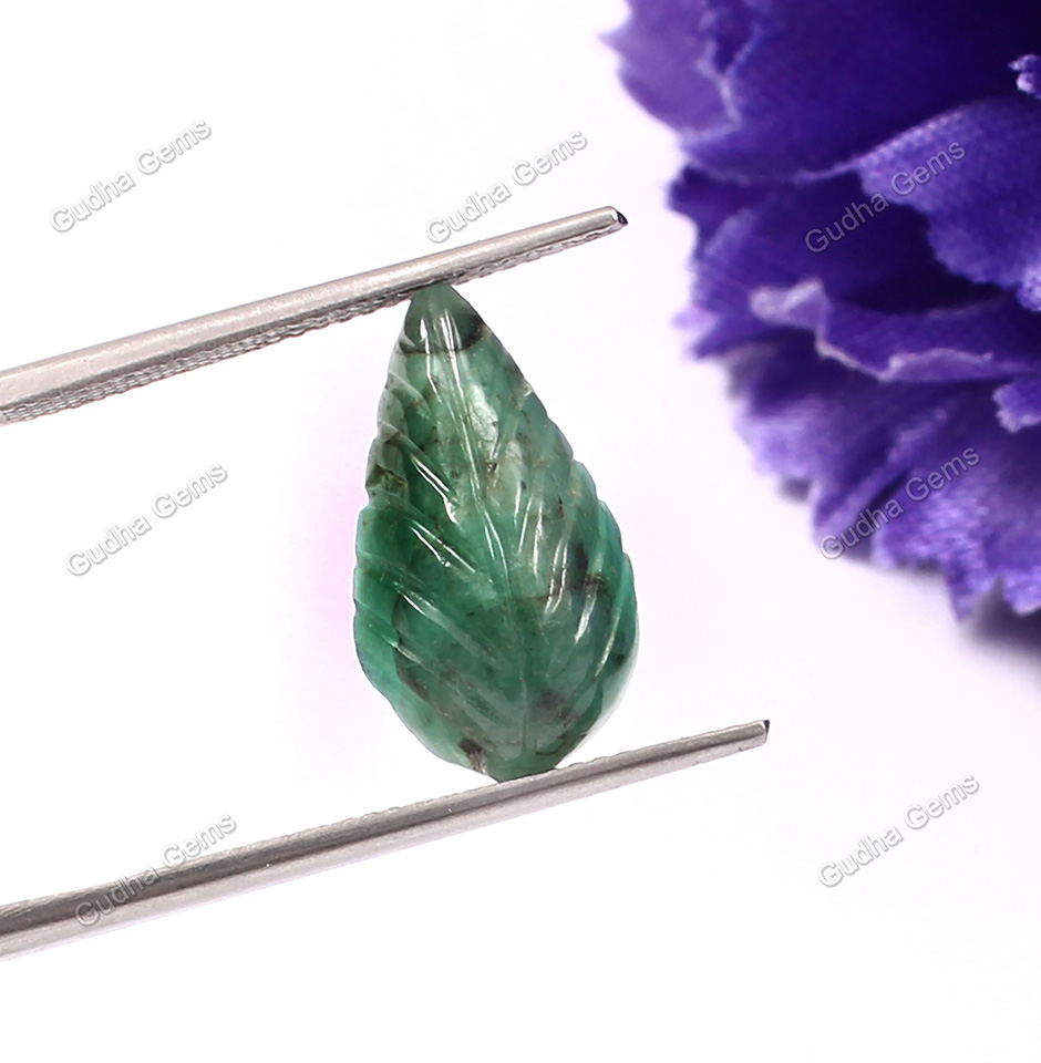 4.80 CRT Attractive Leaf Carved Emerald Gemstone