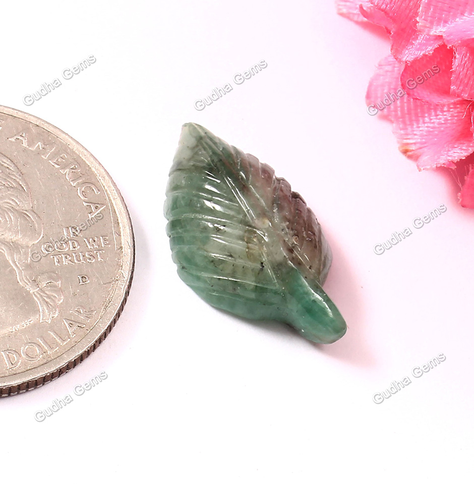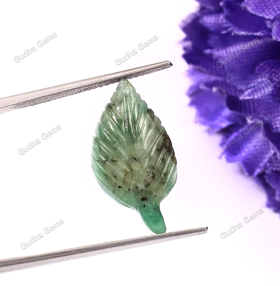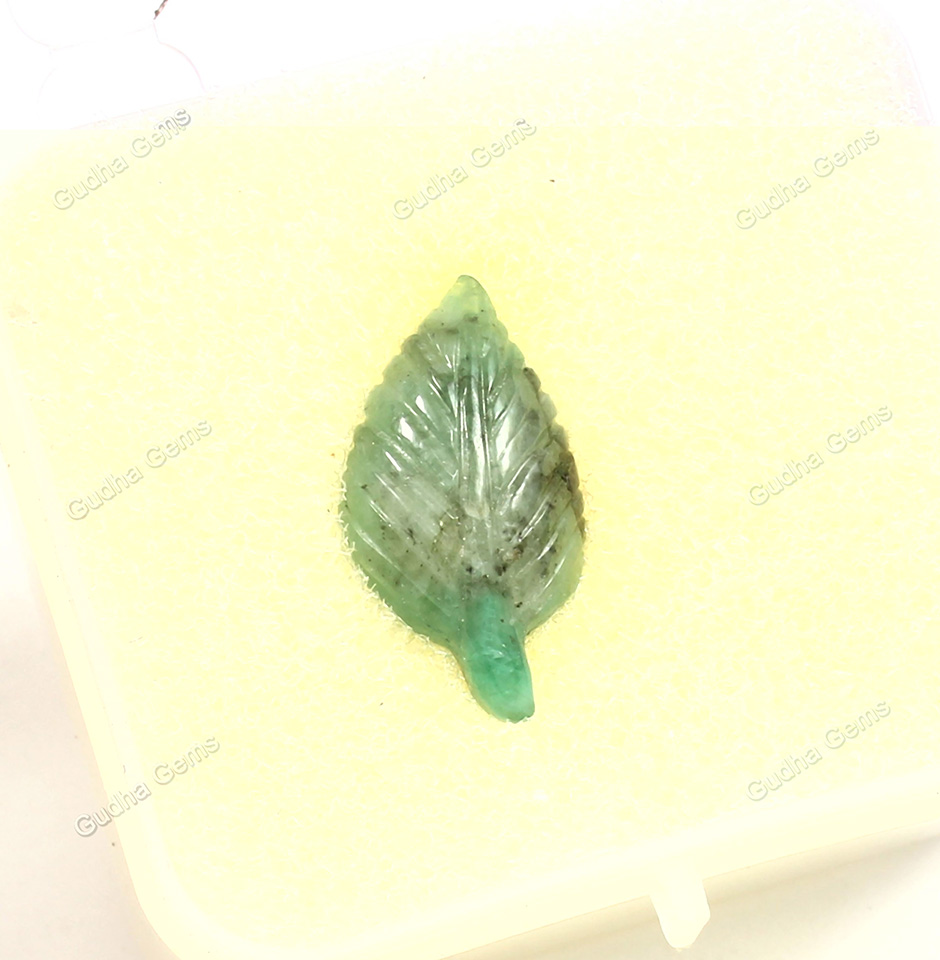 7.60 CRT Attractive Leaf Carved Emerald Gemstone