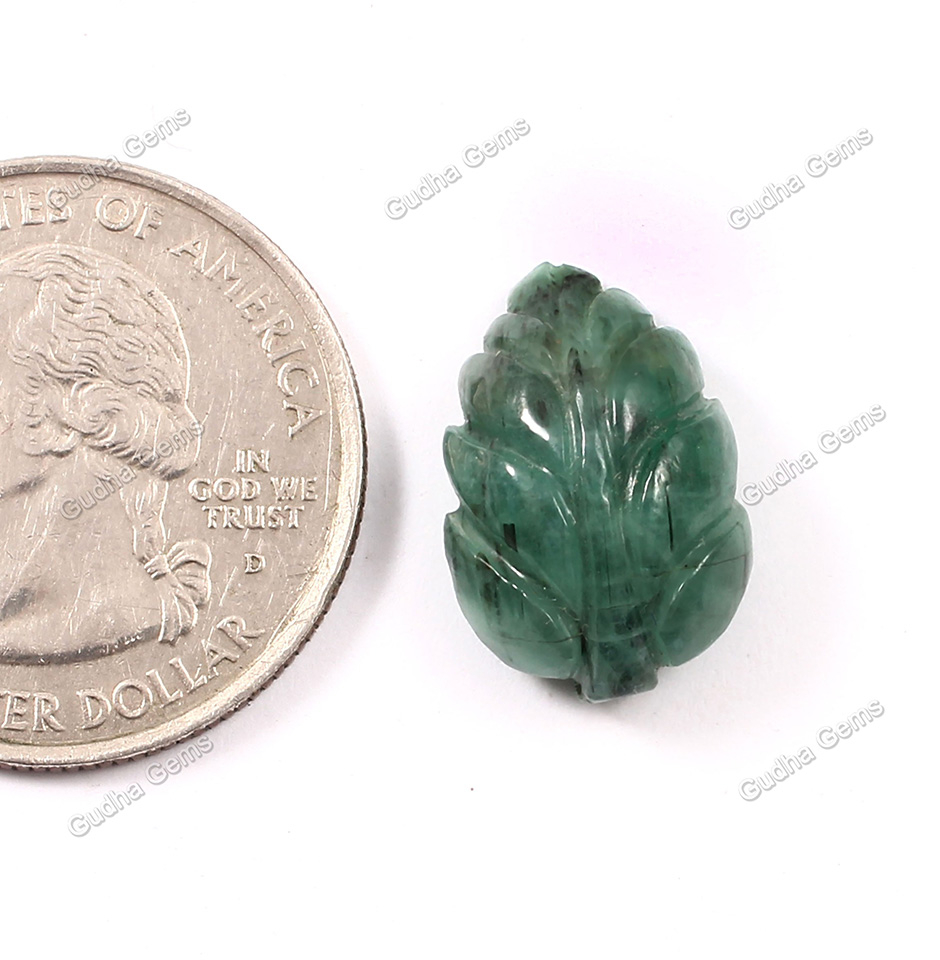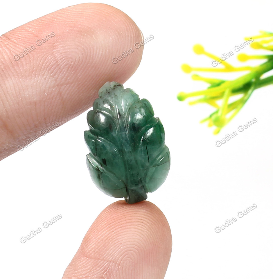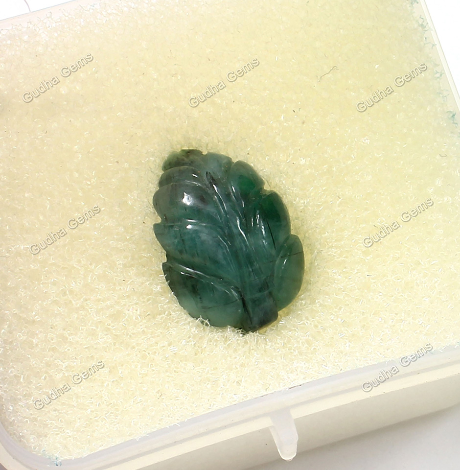 9.70 CRT Unique Leaf Carved Emerald Gemstone