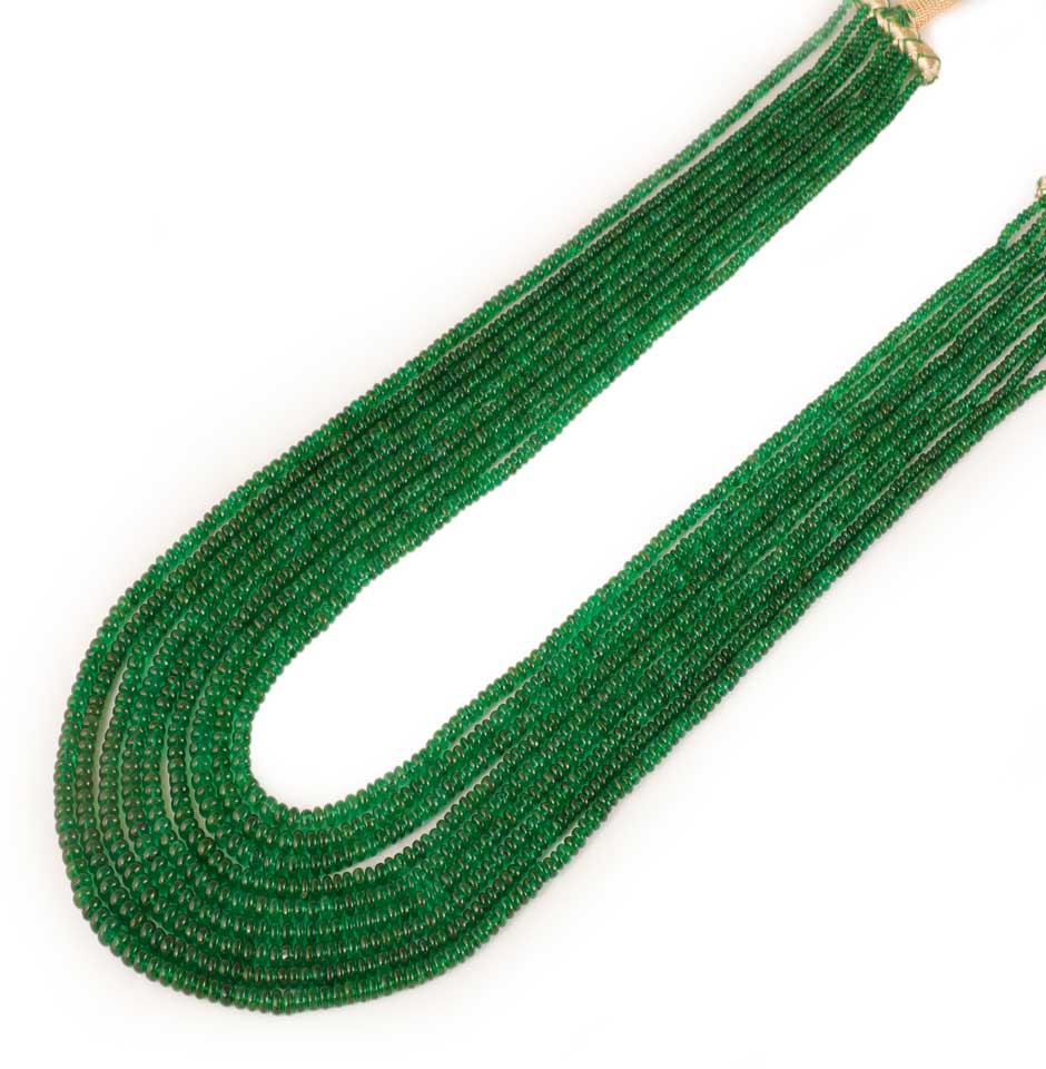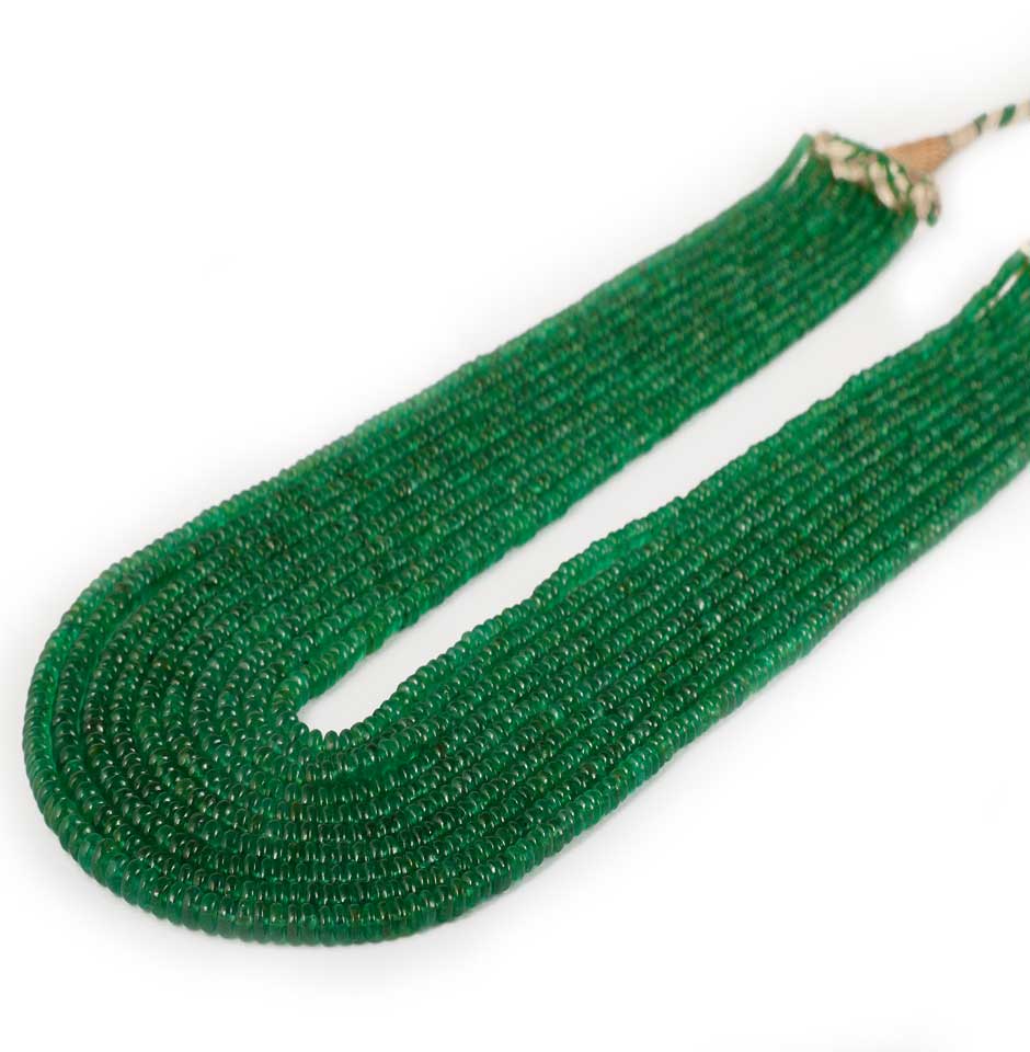 These roundel-shaped, green AAA Quality Plain Emerald Beads range in size from 2 to 3.5 mm and are made in Zambia, Africa. The exceptional clarity, deep green hue, and subdued bluish overtone of Zambian emerald make it a premium variety of genuine emerald gemstone. It is often referred to as the birthstone for the month of May in western astrology. Zambian emerald jewellery has quickly earned a respectable position in the international gem market because of characteristics like a cool green colour and rather acceptable clarity. The beads are skillfully hand-carved, as can be observed in both the picture and the shape and cut of the beads. When making, even the smallest elements are considered. As a wholesale merchant in Jaipur, we firmly guarantee that our clients will receive only the highest calibre products. Get the stuff for a reasonable price when you order.