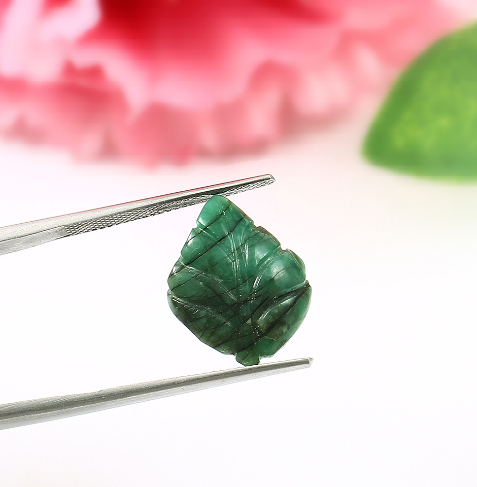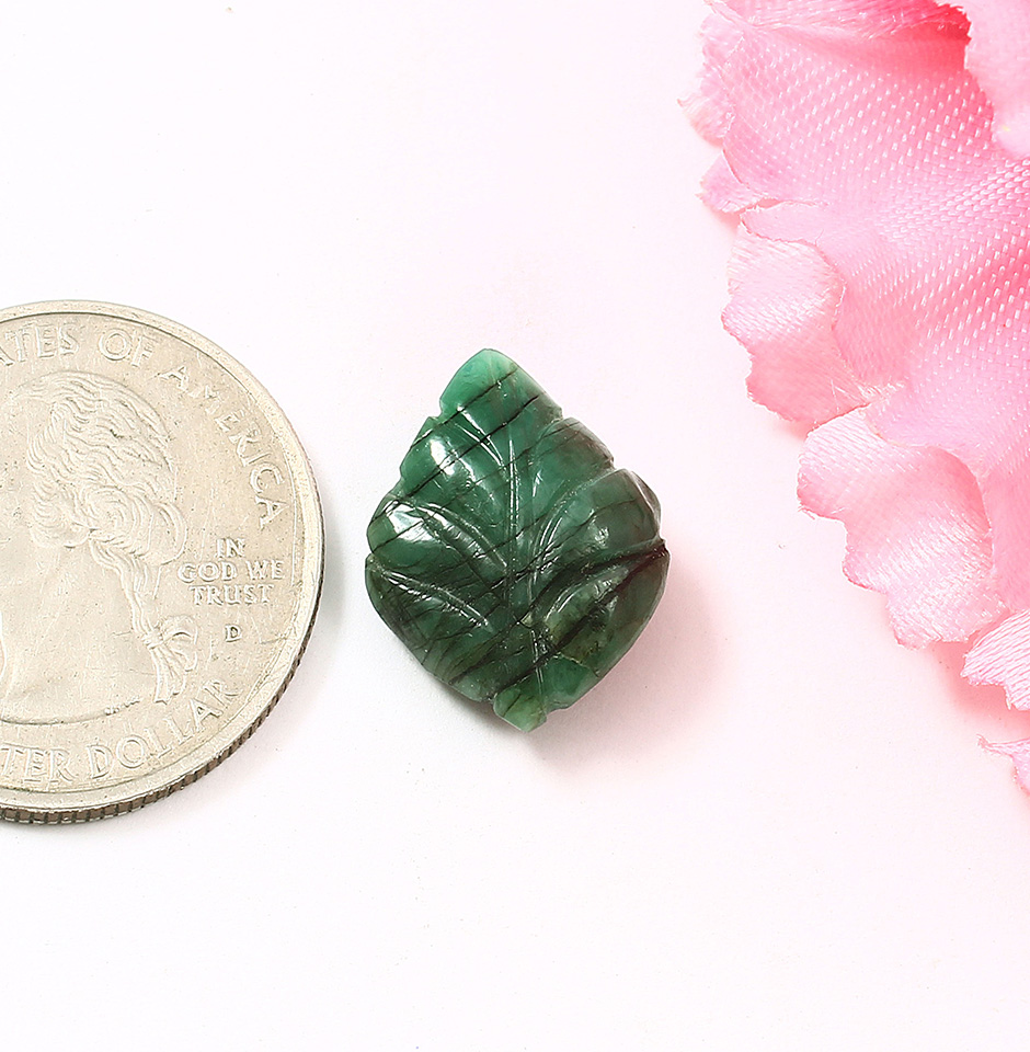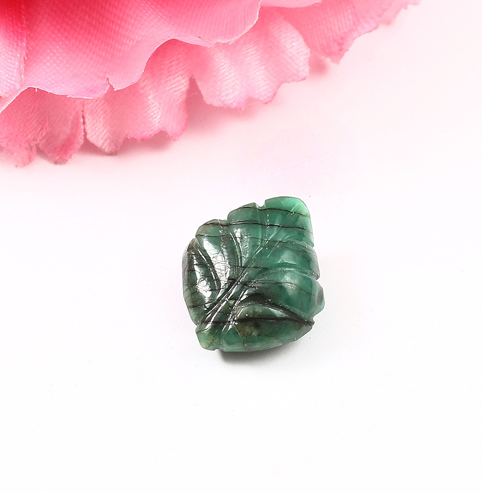Beautiful Leaf Carved Natural Emerald Gemstone