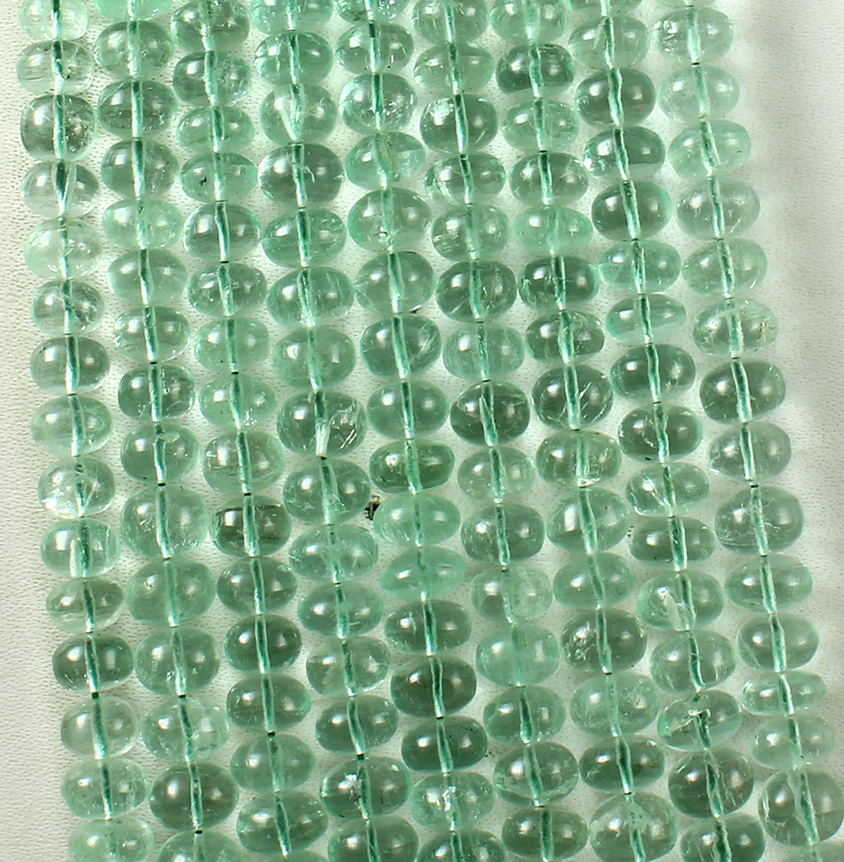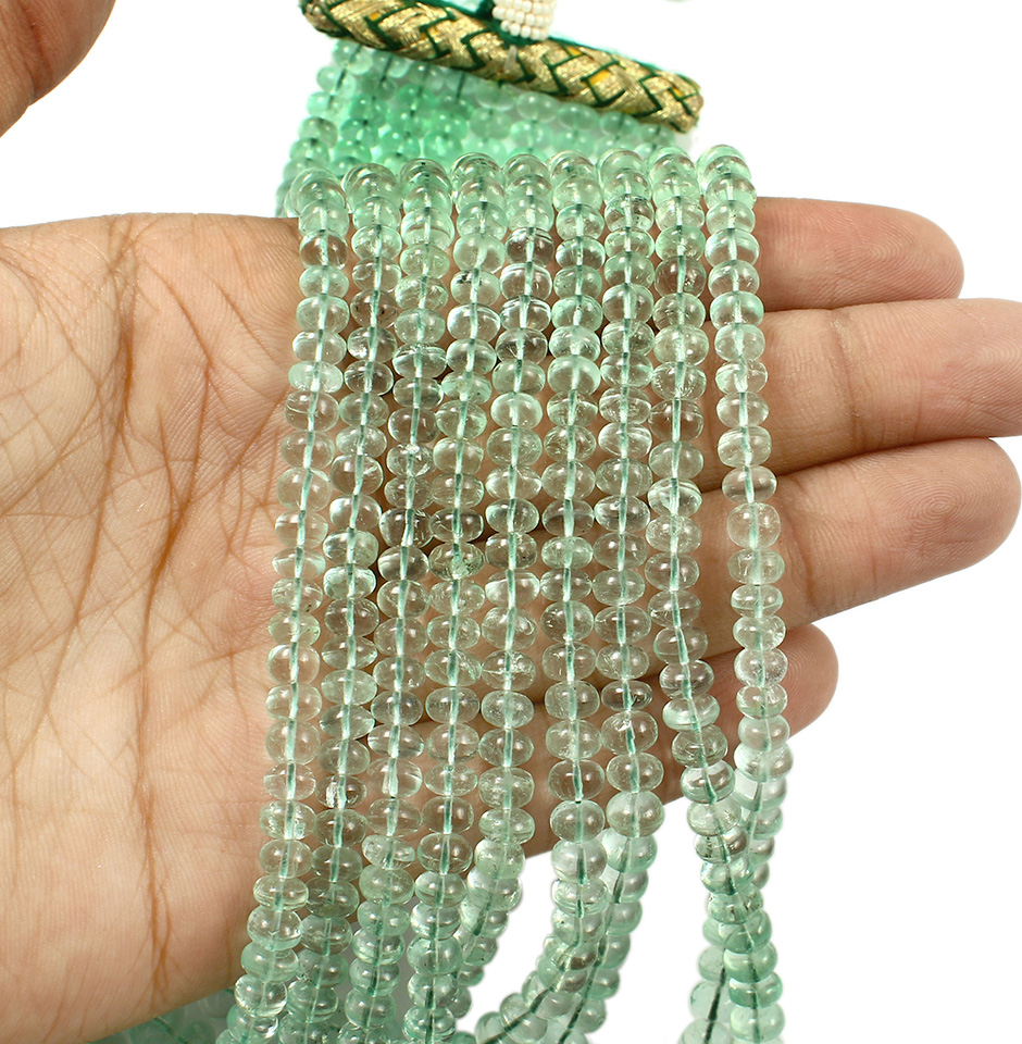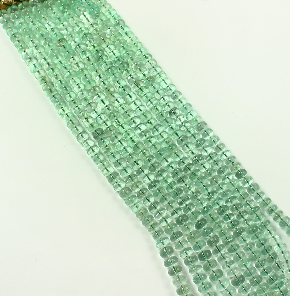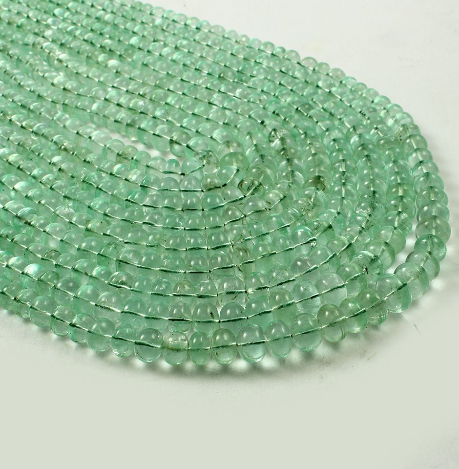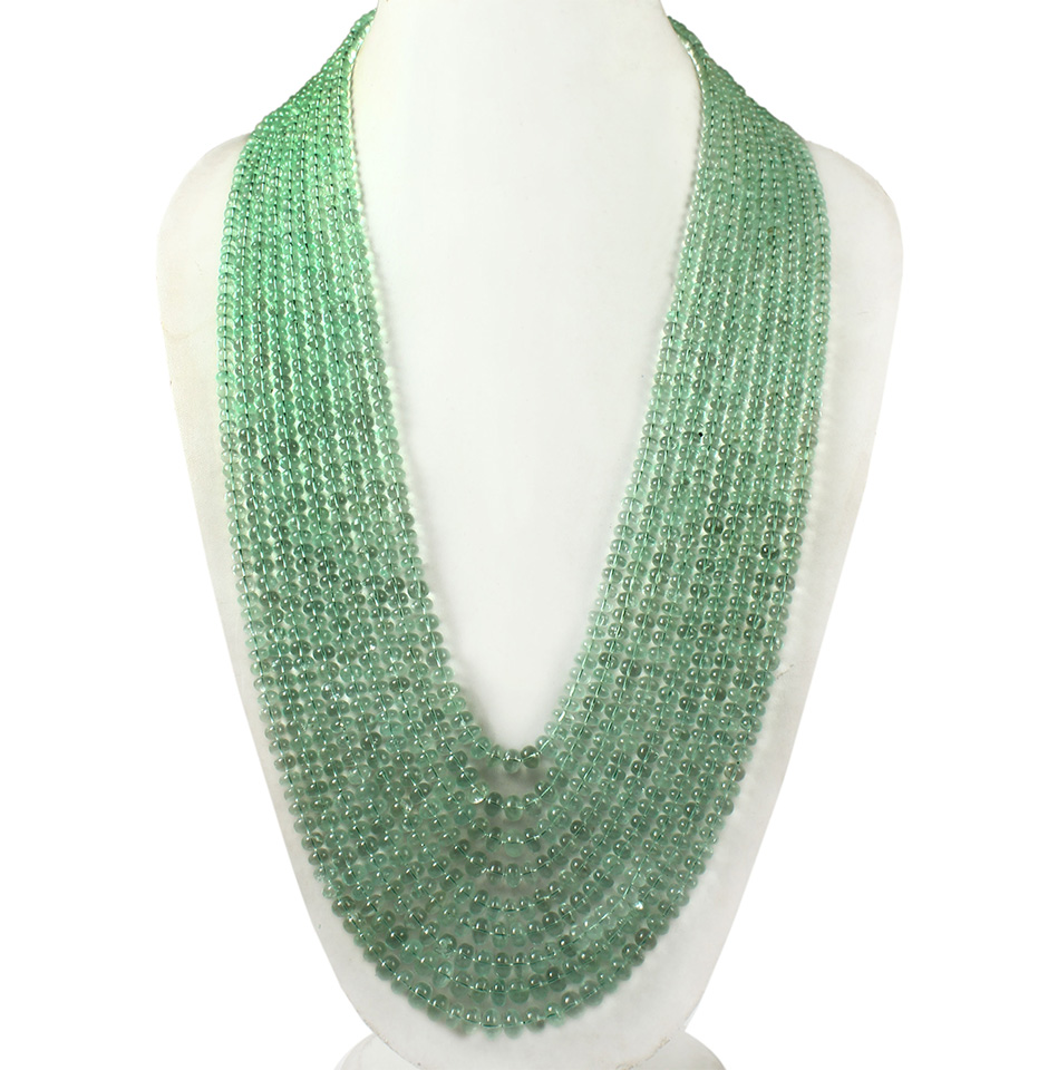 The diameters of these 1610 carat Colombian emerald plain beads necklaces range from 6 mm to 10 mm. These round, smooth beads are made in the shape of an emerald, and Colombia is where emeralds are mined. It is thought to be the world's second-largest producer of fine emeralds. One of the major suppliers of emeralds of the highest quality is the Colombian mine Las Cruces.