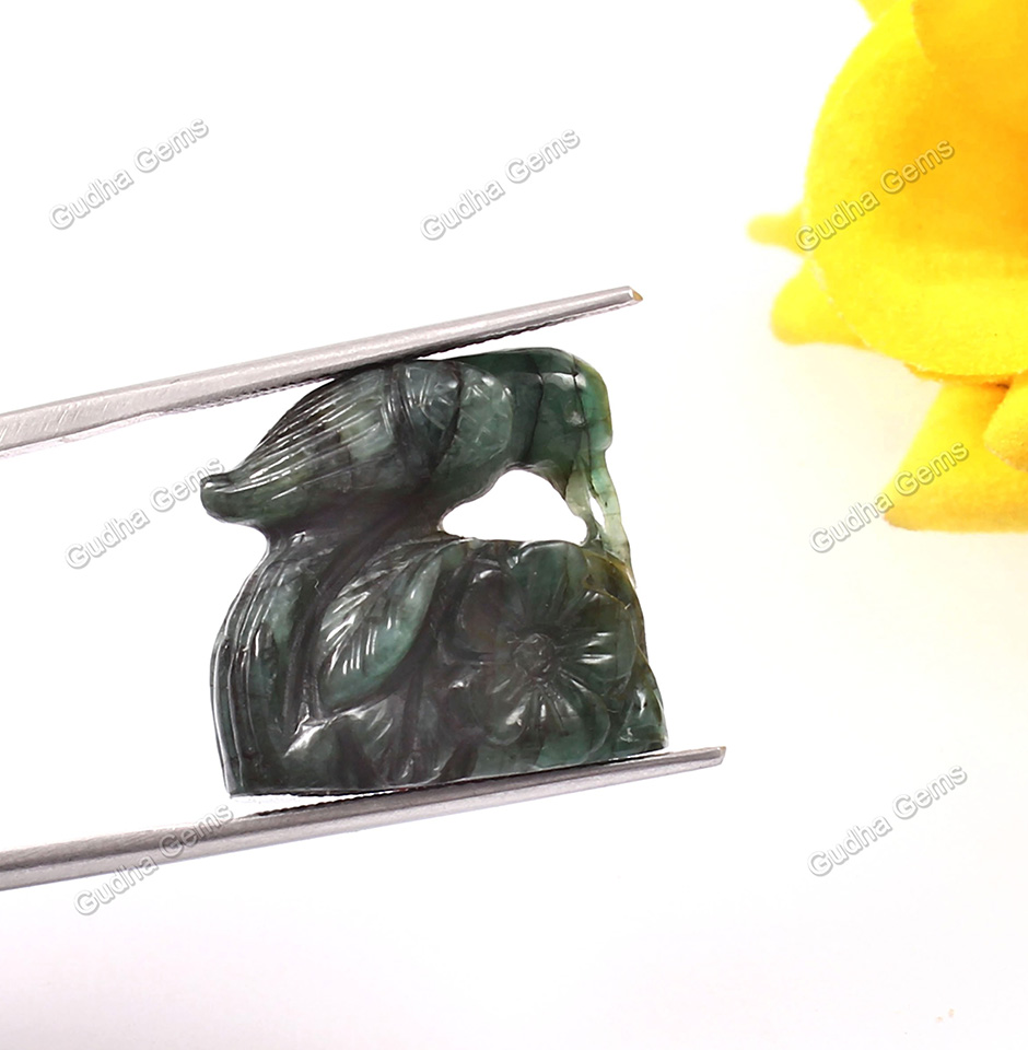 Designer Hand Carved Untreated Emerald Gemstone