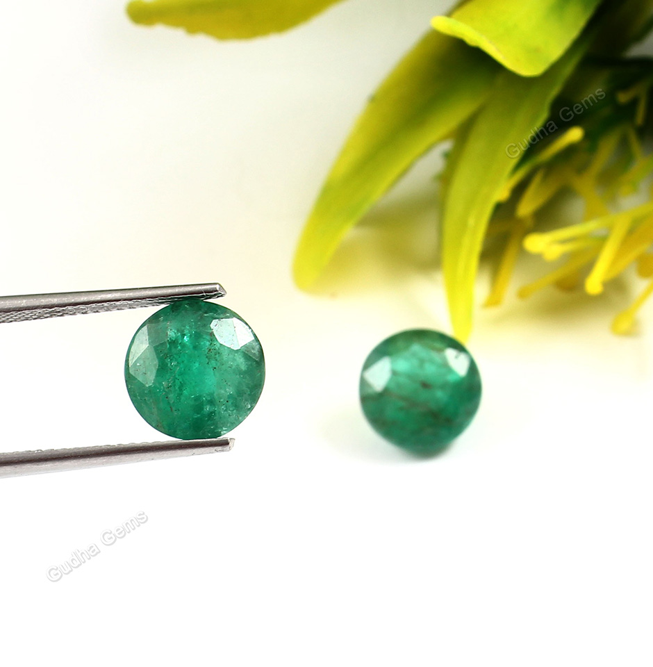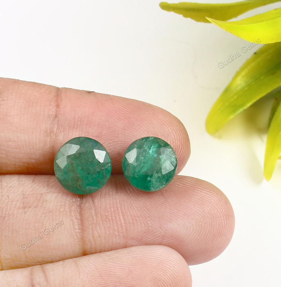 Introducing the breathtaking Diamond Cut Emerald Pair with a Carat Weight of 11 Carats, available exclusively from Gudha Gems Company. Crafted from the finest quality emeralds sourced from the mines of Zambia, this stunning pair boasts a magnificent blue-green colour that is sure to leave onlookers mesmerized.The Diamond Cut Emerald Pair measures 10.5 mm x 5.2 mm in size, add elegance and sophistication to any jewellery collection. The emeralds are expertly cut in a round shape, with precision and skill, to maximise their brilliance and shine.The origin of the stones from Zambia speaks to their authenticity and quality, as the region is well-known for producing some of the world's most sought-after emeralds. The emeralds are ethically sourced and conflict-free, ensuring that they are not only beautiful but also responsibly sourced.