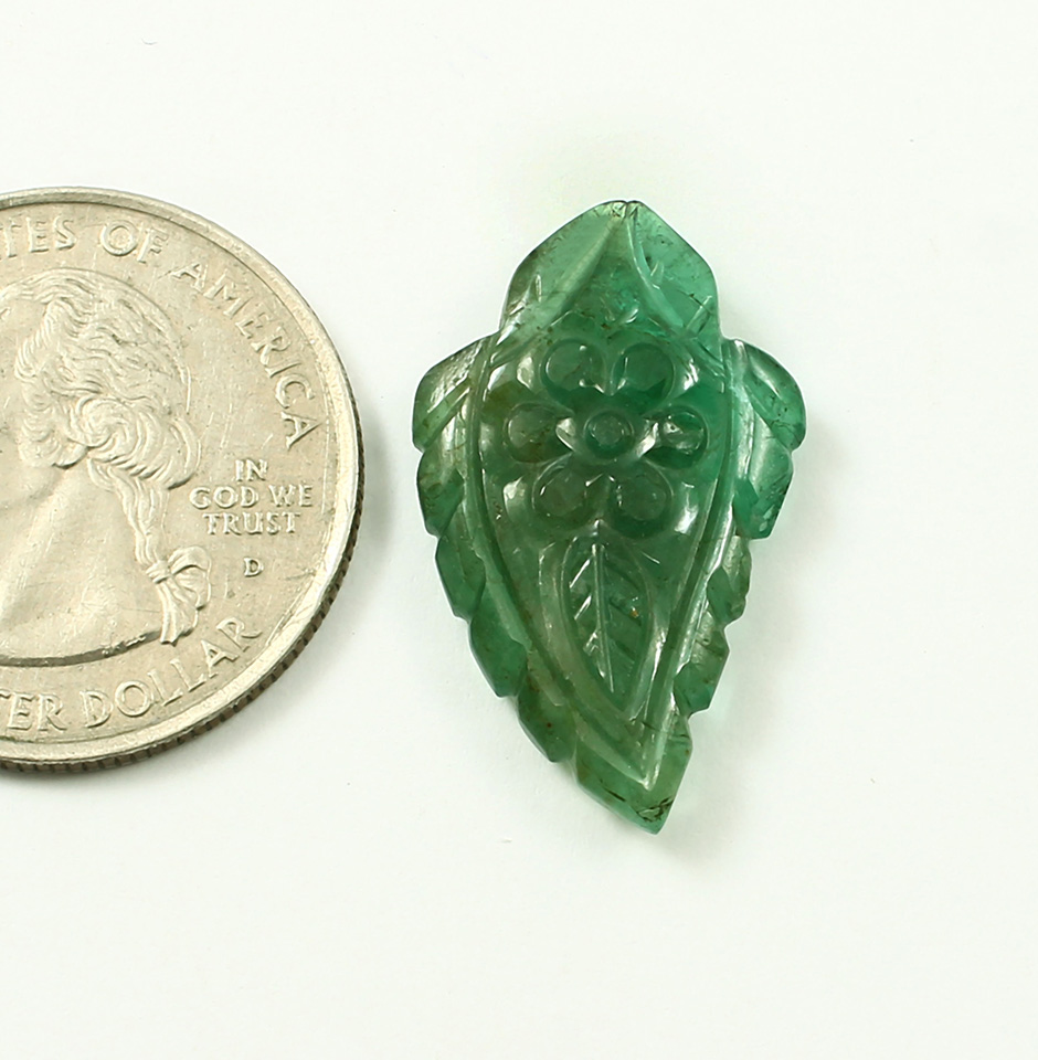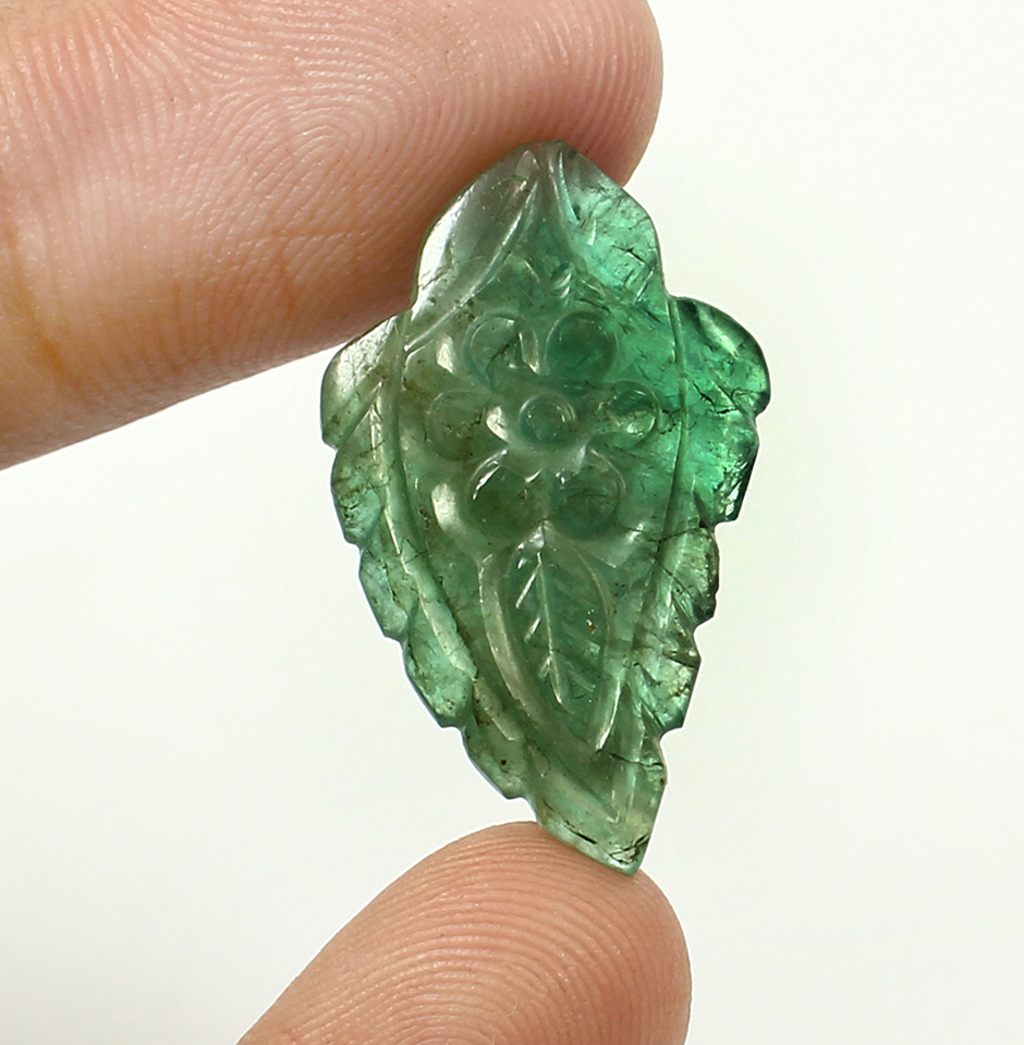 The beautiful Emerald Nail Pendant Stone is of dusty green shade. The size of stone is 25 mm x 15 mm x 4 mm. The stone has what looks like a leafy form. The engraving and carving on the leaf were effectively done by hand. As a wholesaler in Jaipur, we provide you the highest calibre products available both domestically and internationally. Wearing an original, high-quality Zambian Panna stone is therefore thought to improve one's memory, creativity, and capacity for information. The value and appeal of a gemstone are increased by a beautiful cut. When worn as a pendant, the stone will look attractive and provide the wearer a fully realistic appearance. Checking your jewellery, especially your emerald jewellery, on a regular basis can ensure that the gemstones are safely fastened to their mount. Wearing it as jewellery develops a person's reasoning and logical skills as well as their cerebral capability. There are numerous advantages to wearing this gem.
