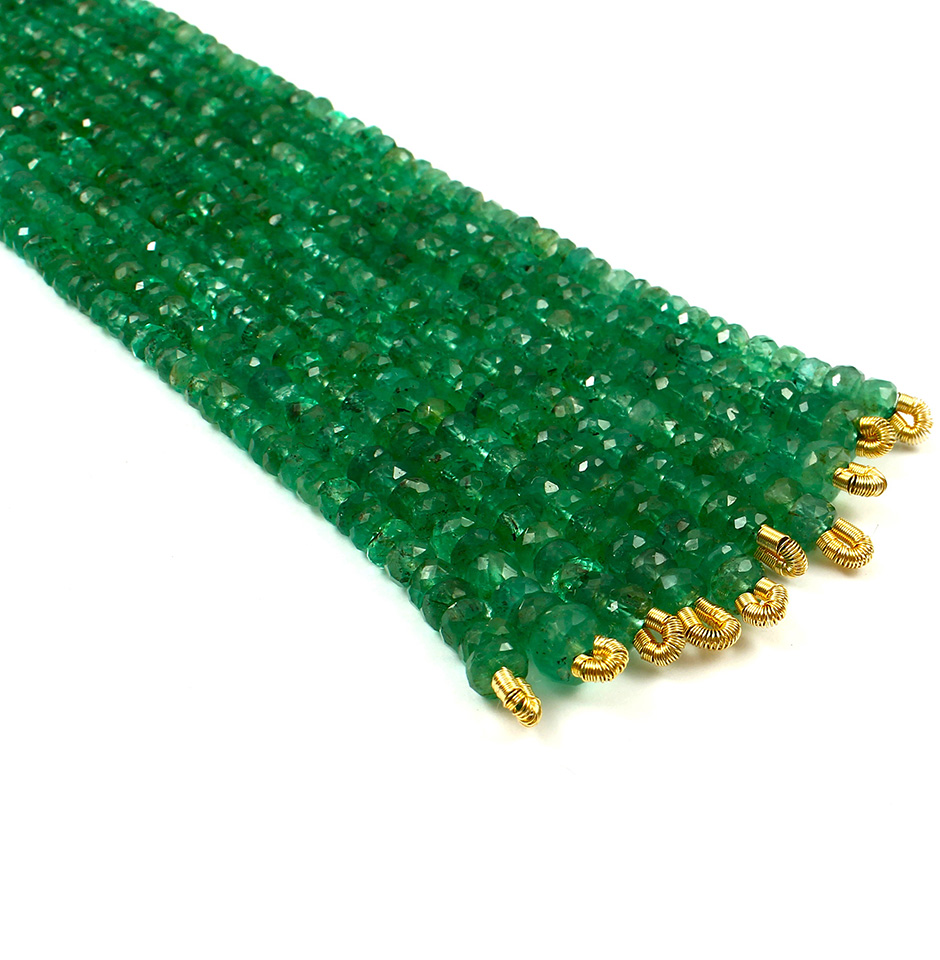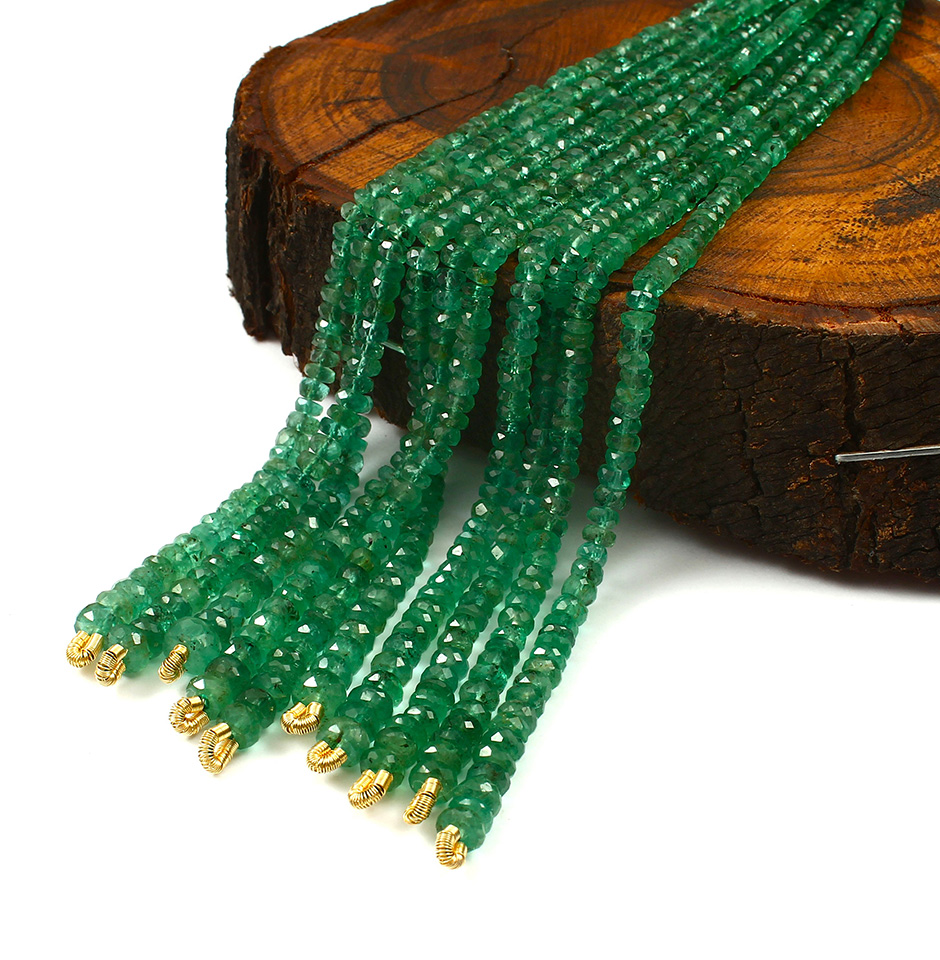 The Fine Quality Faceted Zambian Emerald Beads are of 3mm to 4.5 mm in size and the shape of beads are Rondelle. The origin of the stone is recognized from Zambia. The Jaipur-based makers gave the cut and shape. These beads have a vibrant, glossy green hue. Because there are less "eye-visible inclusions" in Zambian emeralds than in Colombian ones, they are clearer than their Colombian counterparts. Eye-visible inclusions include, among other things, liquid, fissures, and noticeable crystals. As gemstone dealers in Jaipur, we give our clients the best materials available. We never make compromises when providing the services we do.