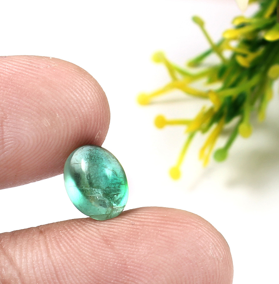 Introducing the Zambian Emerald Oval Shape Cabochon with a remarkable carat weight of 4.5 CT. Crafted with precision by Gudha Gems Company,wholesale precious gemstone manufacturer, this emerald is truly a breathtaking piece. Its vivid green-blue color is a testament to the quality of the Zambian emerald, a highly sought-after gemstone renowned for its rich color and clarity.Measuring 11 mm x 7 mm x 4 mm, this emerald is the perfect size for a variety of settings. Its oval shape lends itself well to classic designs, while the cabochon cut gives the stone a smooth, rounded surface that enhances its natural beauty.