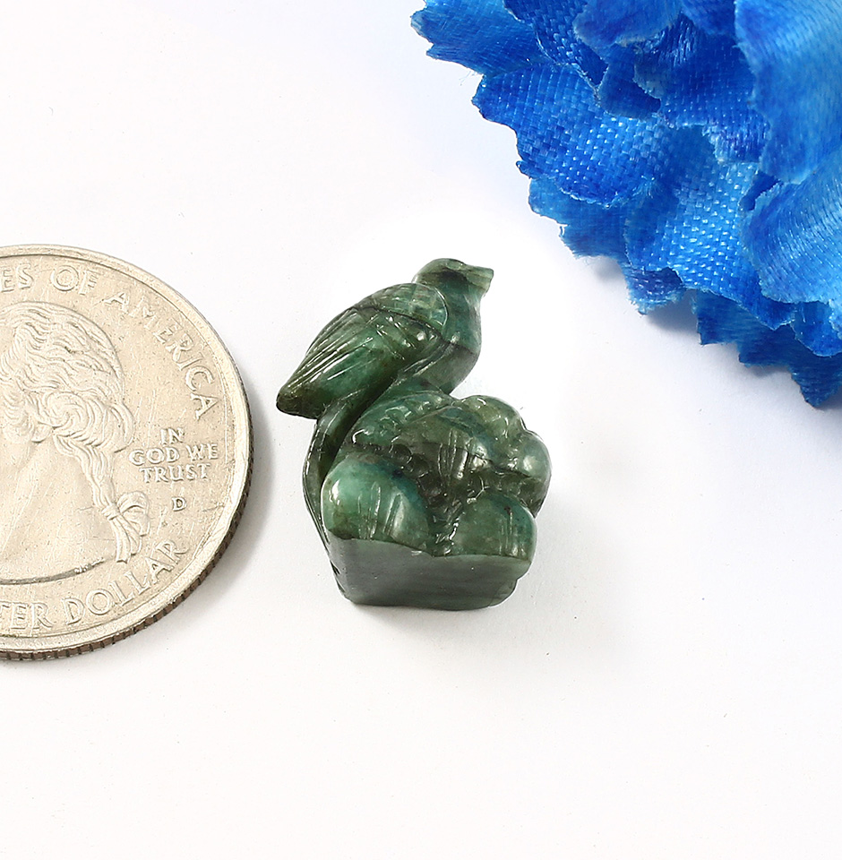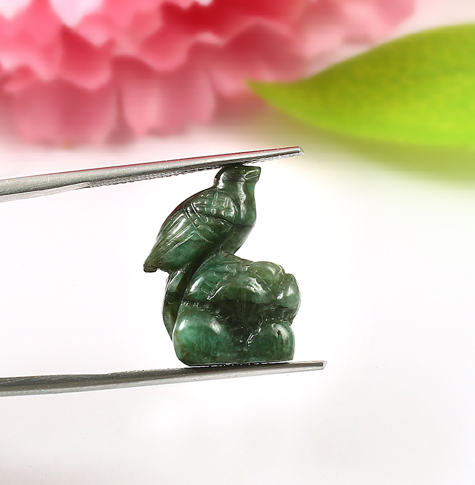 Hand Carved Emerald Gemstone, Antique Sparrow Sculpture And Flower Design Rare Emerald