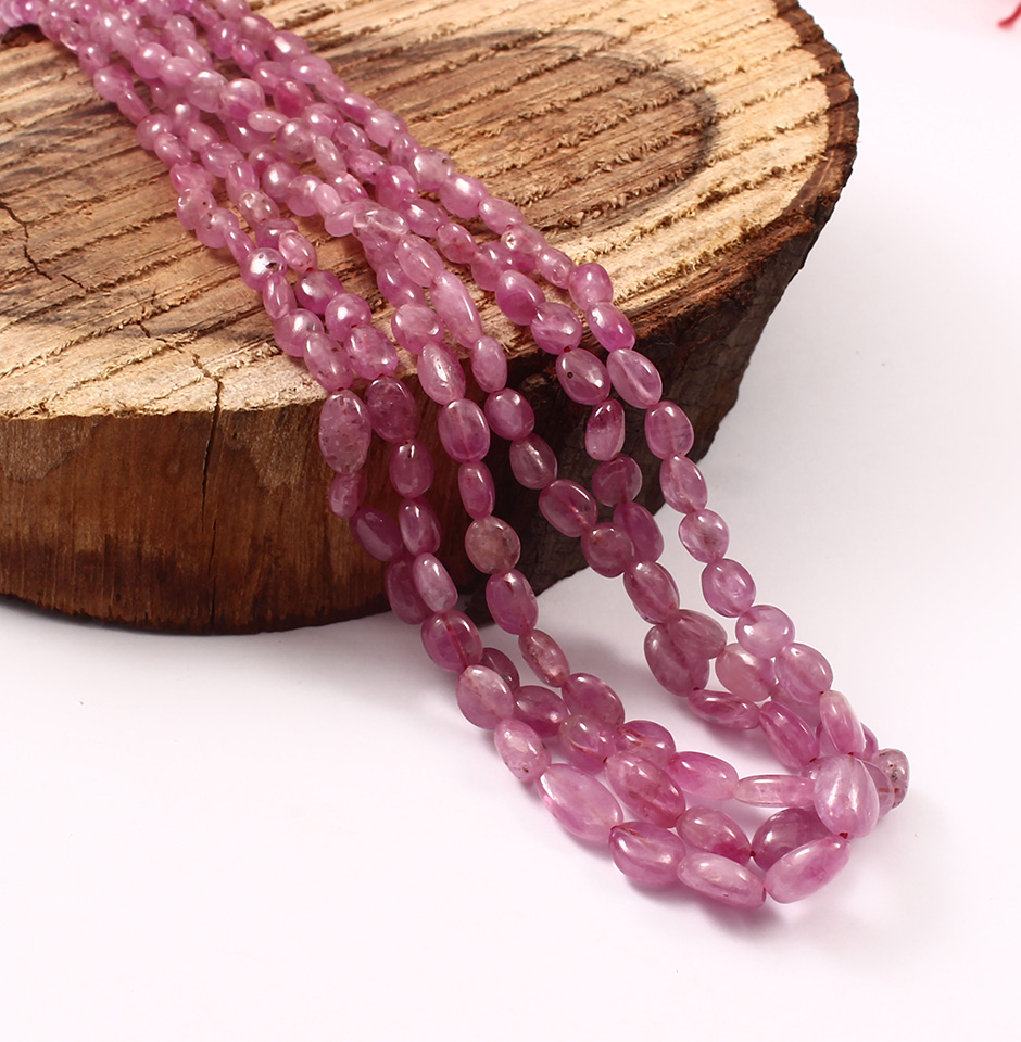 Gemstones from Burma are created in the earth's womb over billions of years. They are a smooth oval mani stone bead strand made of natural Burmese pink ruby gemstone. Outstanding quality for making necklaces, bracelets, earrings, and other jewelry. The universe and spirits are deeply connected to us through gemstones. It is a magnificent stone for boosting your vitality, and it could enliven your mind to be more upbeat and self-assured. With Diamond, Emerald, and Sapphire as the other three "valuable" gemstones, natural ruby is a rare, expensive, and durable gemstone.Top-notch cutting and polishing are used to create our beads. We don't cut corners when "manufacturing" the beads; each strand is expertly cut and polished. The colour, cutting, and treatments of the Burmese ruby gemstone are legendary. One of ruby's most unique characteristics is its crimson colour. This colour is gorgeous. Ruby has a number of variations. Burmese rubies are regarded as the best rubies and are rare, expensive jewels.