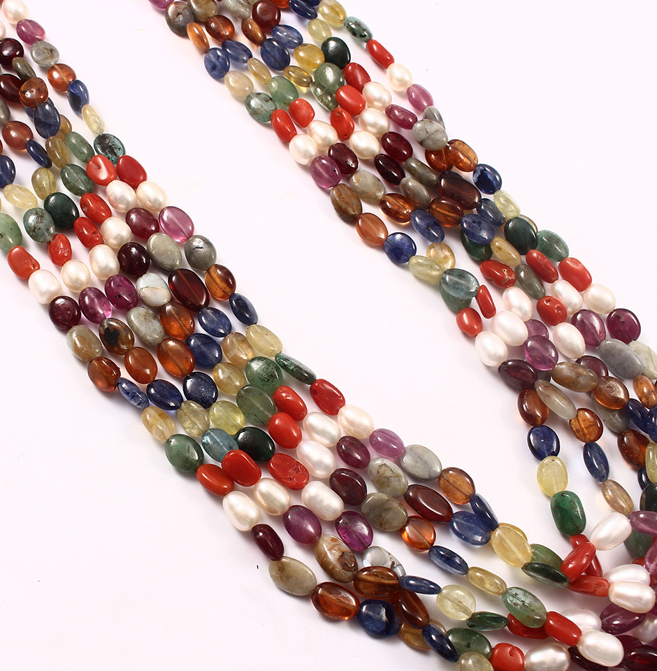 Natural Navratan Multi Gemstone Oval Briolette Beads, Fantastic Vintage Multi Gemstone
