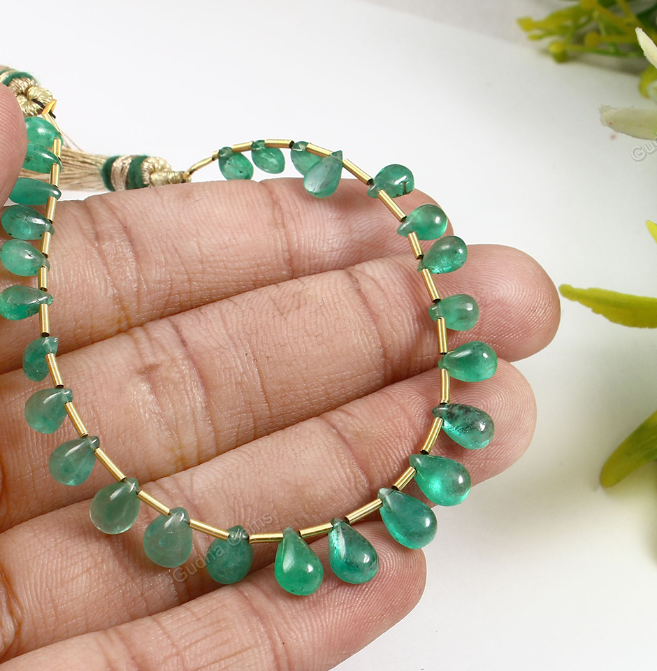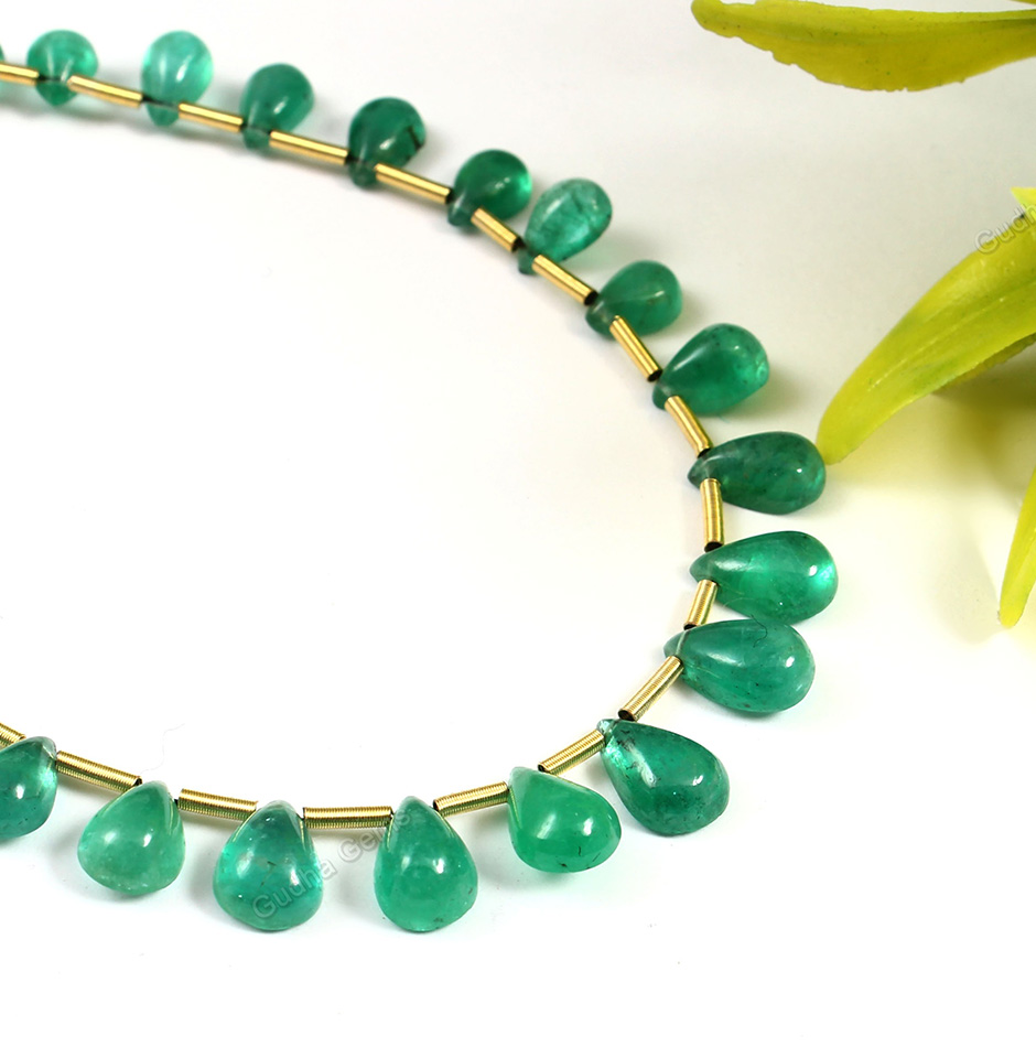 Crafted with the utmost attention to detail, our Emerald Pear Cab Beads are a true testament to the exceptional quality and craftsmanship that is synonymous with Gudha Gems, online gemstone supplier in Jaipur. Each bead has been carefully cut and polished to enhance their natural beauty, resulting in a flawless finish that will leave you in awe. Their vivid green color and natural beauty make them a standout addition to any jewelry collection, and their versatility in size allows for endless design possibilities. With their stunning color, flawless finish, and natural authenticity, they are sure to impress and delight for years to come. Experience the luxury of Gudha Gems today and add these exquisite Emerald Pear Cab Beads to your collection.