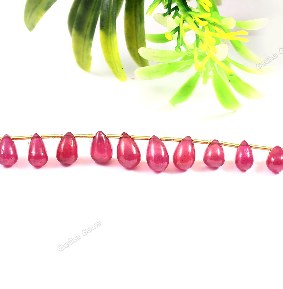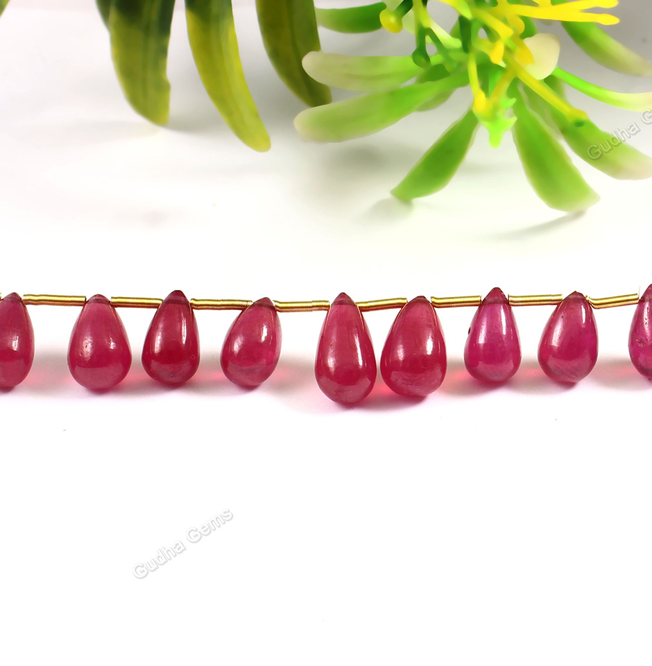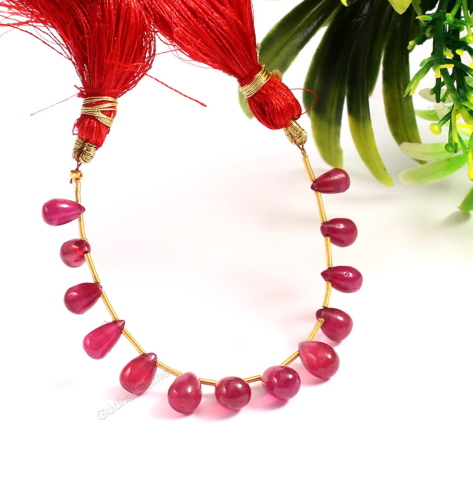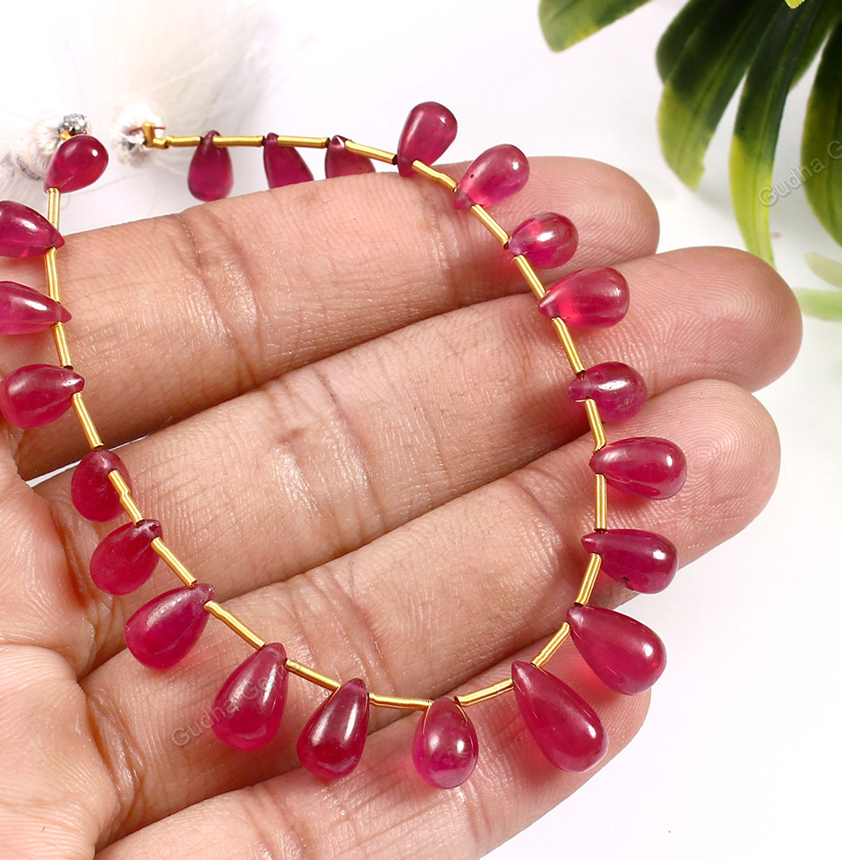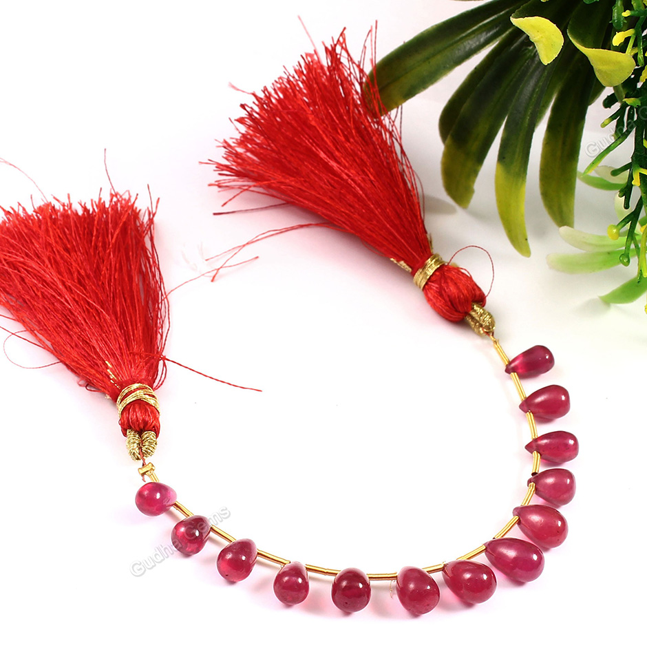 It could be a good idea to show interest in the affordable African rubies available today since rubies are one of the most valuable and rare gemstones available. Aluminium oxide, sometimes referred to as corundum, is created when oxygen reacts with aluminium to create rubies. Africa is where ruby gets one of its best properties. This teardrop-shaped ruby, which weighs 98 carats and is 6 to 8 mm in size, has a polished surface and a natural shade of glossy red. This Old Ruby Teardrop Beads roundel is strung on a thread at specific intervals from one another. These teardrop forms were carved by hand, which gives them a special quality and demonstrates their skill. Purchase these Beads at a discount from Gudha Gems. As a wholesaler in Jaipur, we guarantee that you will receive the highest calibre beads possible, handcrafted from the best rubies that can be found in naturally occurring mines.