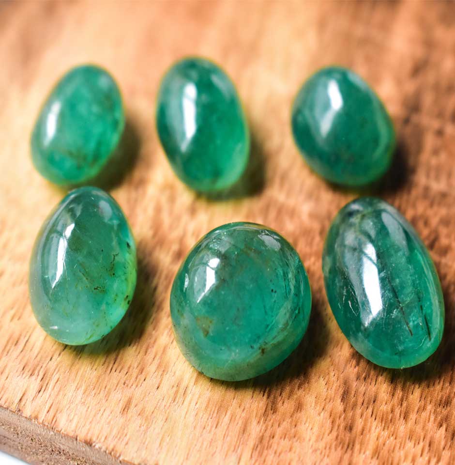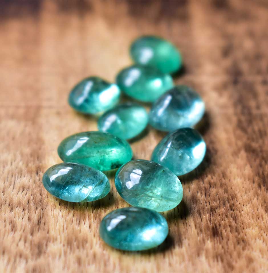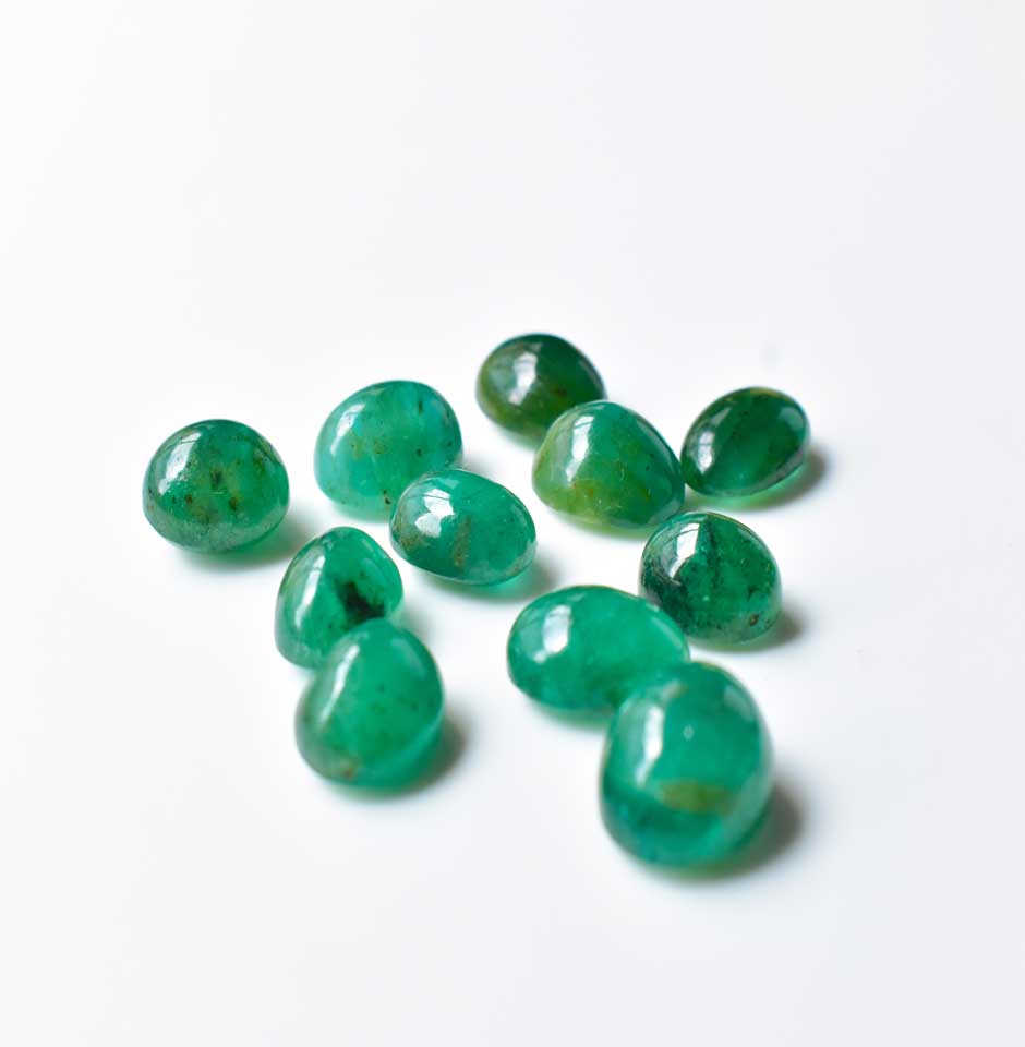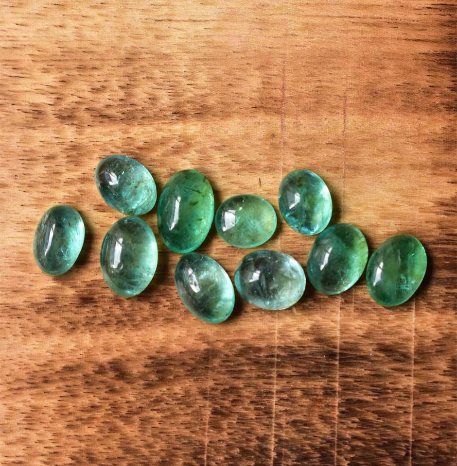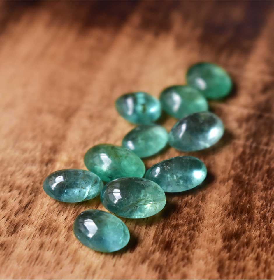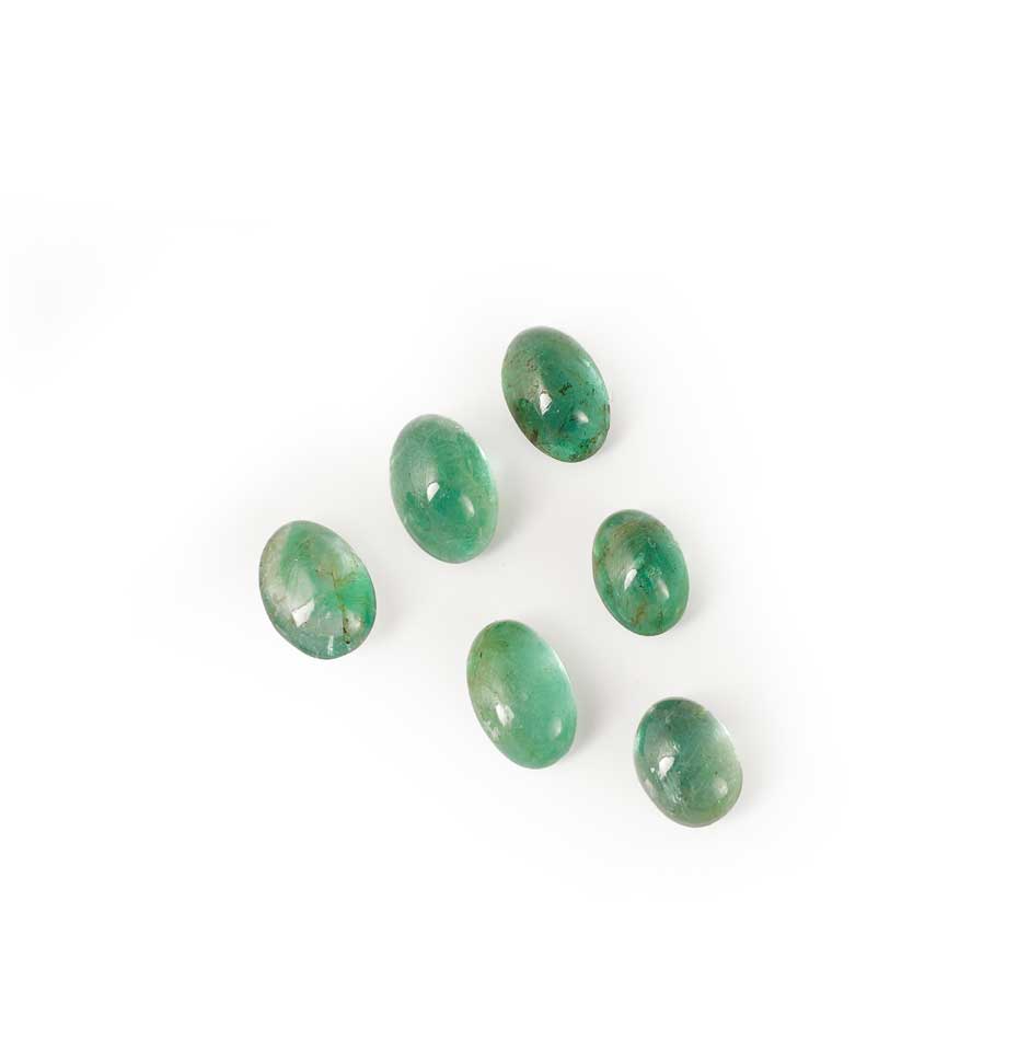 The discovery of emeralds is among the most significant geological discoveries in modern memory. Emerald cabochons have their own allure despite not necessarily being the most popular variety of emerald. Rarely clear, cabochon-cut gem stones exhibit exceptionally high colour purity with no extinction. This is a very attractive form that gem cutters have in their skill set since the appeal of coloured gems like emeralds is colour. A domed top characterises a basic cabochon cut. Although it's common for emerald cabochons to have a curved bottom as well, it's not always the case. The bottom can also be flat. These Oval Emerald Cabochons are over 5 carats in weight, have a brilliant green hue, and were cut in Zambia, Africa. This stone has clarity on its surface. The Cabochon is hand-cut and hand-shaped.