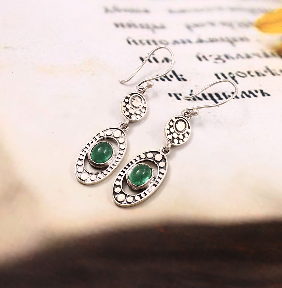 Introducing the stunning Oval Emerald Dangle Earrings from Gudha Gems Company - a must-have addition to any jewelry collection. These earrings feature two beautiful oval-shaped emeralds that dangle elegantly from your ears, catching the light and creating a mesmerizing display of sparkle and shine.The emeralds are expertly cut to enhance their natural beauty, and are set in a classic prong setting that allows them to shine from every angle.The design of these earrings is both timeless and contemporary, making them the perfect choice for any occasion.Whether you're looking for a sophisticated accessory to wear to a black tie event, or a statement piece to elevate your everyday look, these earrings will not disappoint.The secure lever-back closure ensures that they will stay comfortably in place throughout the day and night, while also making them easy to put on and take off.