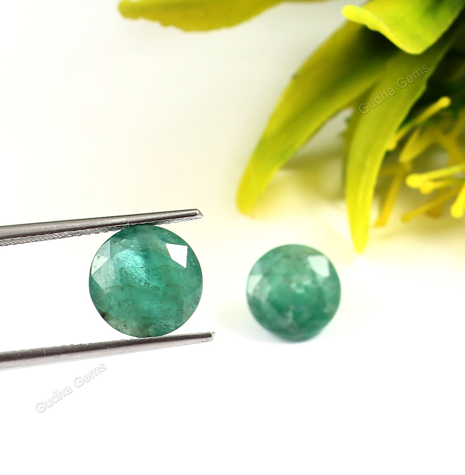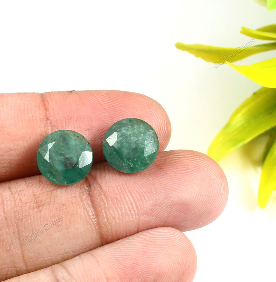 Introducing the Zambia Emerald Round Cut Stone Pair, an exquisite gemstone duo from Gudha Gems Company. This pair boasts a total carat weight of 12 carats, making it a stunning addition to any jewellery collection.Each stone measures 11mm in diameter, making them the perfect size for a variety of jewellery designs. The round cut of these stones enhances their natural beauty, allowing them to shine and sparkle in any setting.The round cut of these stones further accentuates their natural beauty, giving them a classic and timeless appeal.The emeralds are expertly cut into a classic round shape, with a diameter of 11mm. The symmetry of the round cut adds to the overall beauty of the stone pair, giving it a balanced and harmonious appearance.