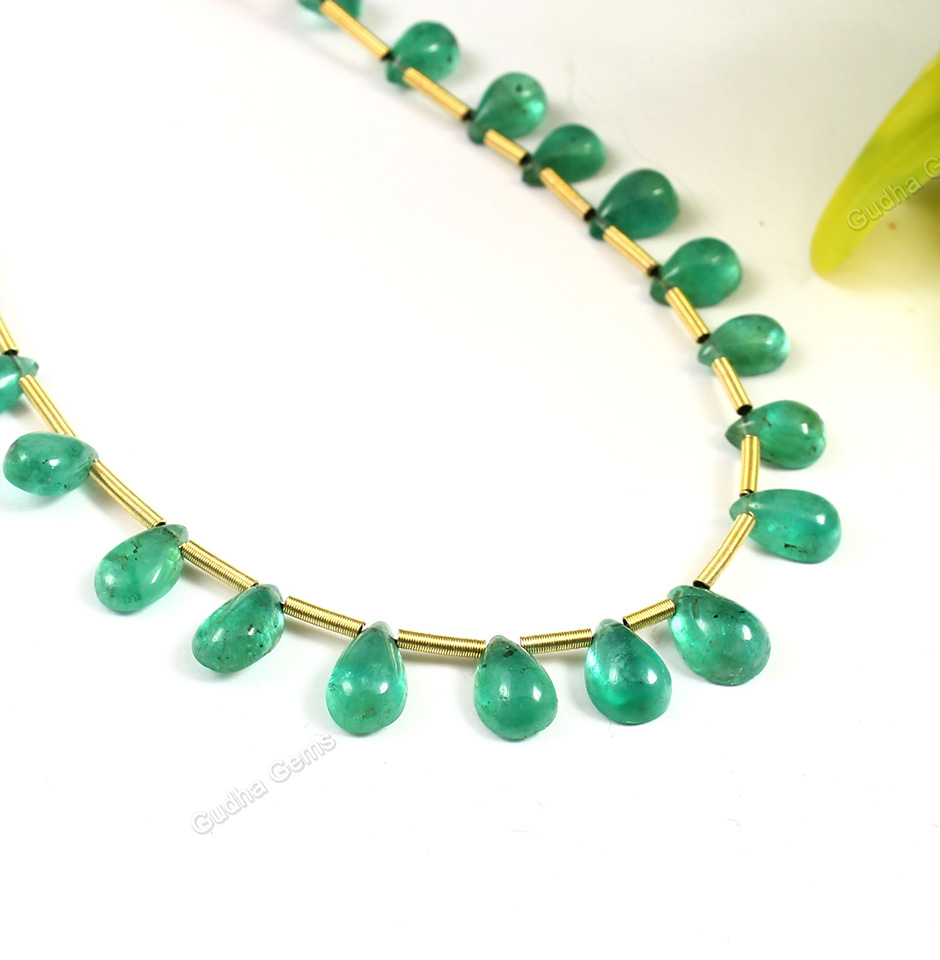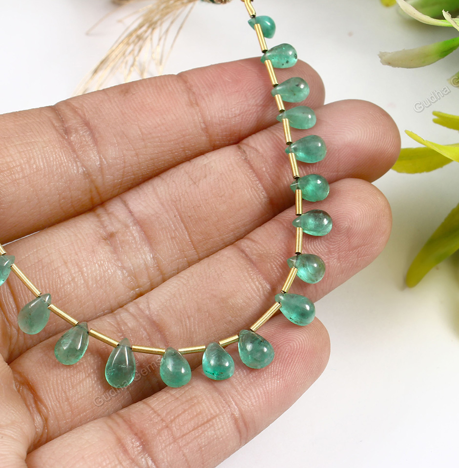 These beads have a pear-shaped cabochon cut, which means that the surface of the gemstone is smooth and polished, giving it a beautiful and elegant finish.The Gudha Gems Company is committed to ethical sourcing practices, ensuring that all their gemstones are sourced in a way that supports the local communities and minimises any negative impact on the environment.If you're looking for a high-quality gemstone and untreated precious gemstone manufacturer in Jaipur that is both beautiful and unique, the Precious Zambian Emerald Pear Cabochon Beads offered by Gudha Gems Company are an excellent choice.