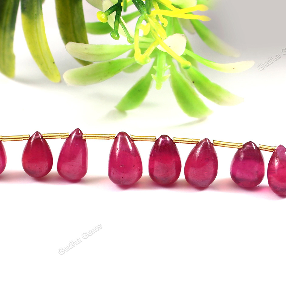 The name "ruby" comes from the Latin word "ruber," which means "red." Rubies are a member of the corundum family and are among the most valuable gems in the world, along with sapphires and diamonds. With increasing darkness, the stone's value rises. Because of its gorgeous crimson colour and strong properties, it is one of the most often purchased stones in the jewellery industry. The eye is immediately mesmerised by the deep, glossy red colour. The majority of these teardrop Ruby stones are naturally mined in Africa. In our capacity as a seller and wholesaler of gemstones in Jaipur, India, we always welcome customers who place sizable purchases. Every purchase comes with an authenticity check from us.