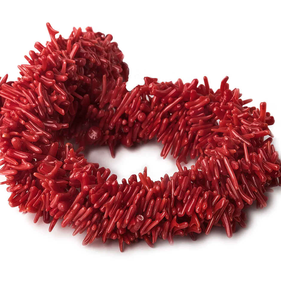 RED BAMBOO CORAL TUBE BEADS 9-10MM NUGGETS