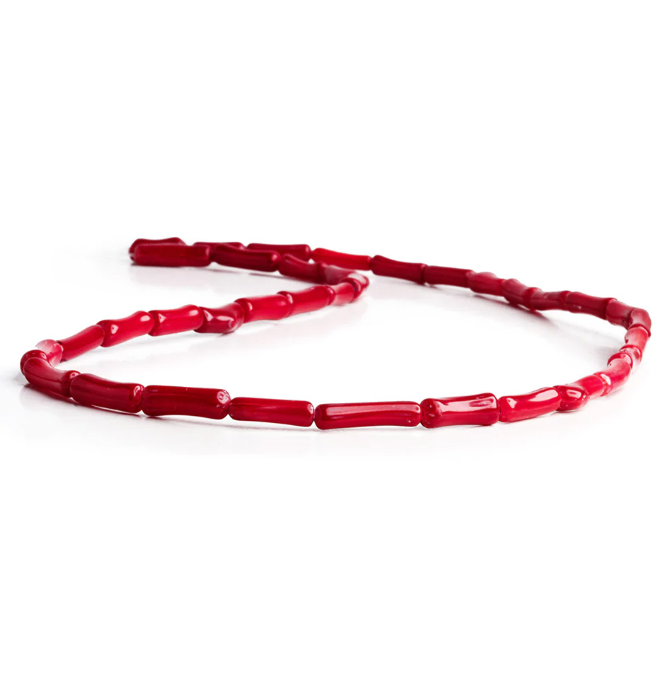 RED BAMBOO CORAL TUBE BEADS 9-10MM NUGGETS
