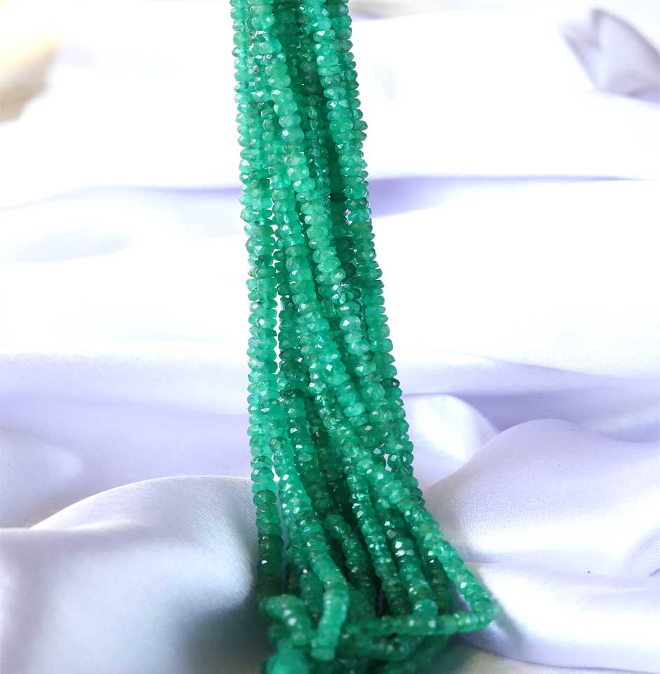 These Rondelle Faceted Emerald Beads are 2 mm to 3.5 mm in size and are said to have originated in Zambia, Africa. Zambian emerald is a premium form of natural emerald gemstone that is prized for its outstanding clarity, rich green colour, and faint bluish overtone. In western astrology, it is also known as the birthstone for the month of May. In a short period of time, qualities including a cool green colour and relatively good clarity have given Zambian emerald jewels a reputable place in the world gem market.