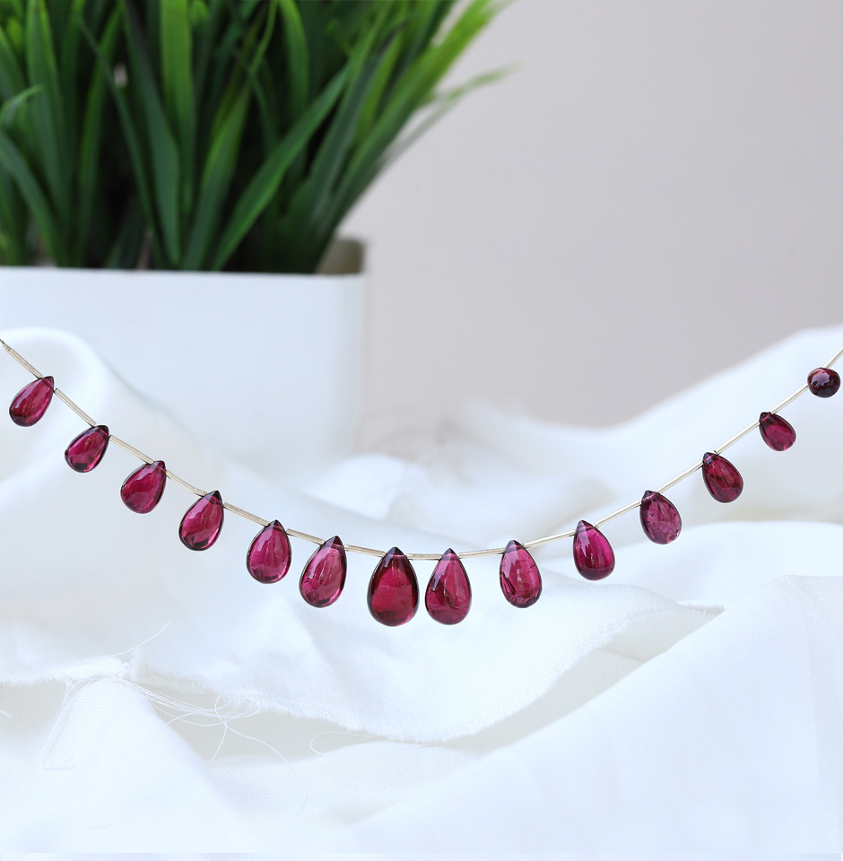 The 26 carat Rubellite Tourmaline Almond Drops are a rubellite pink colour of gemstone. The stone is pear-shaped and comes in diameters ranging from 7 to 10 mm. Brazil is where stone first appeared. To make jewellery such as gemstone beaded bracelets, earrings, and necklaces, get wholesale rubellite tourmaline almond drops gemstone beads from manufacturers at cheap direct factory rates. We make a lot of effort to have a big inventory of superb tourmaline and other precious gemstone beads, but we also place a high priority on keeping our pricing cheap.