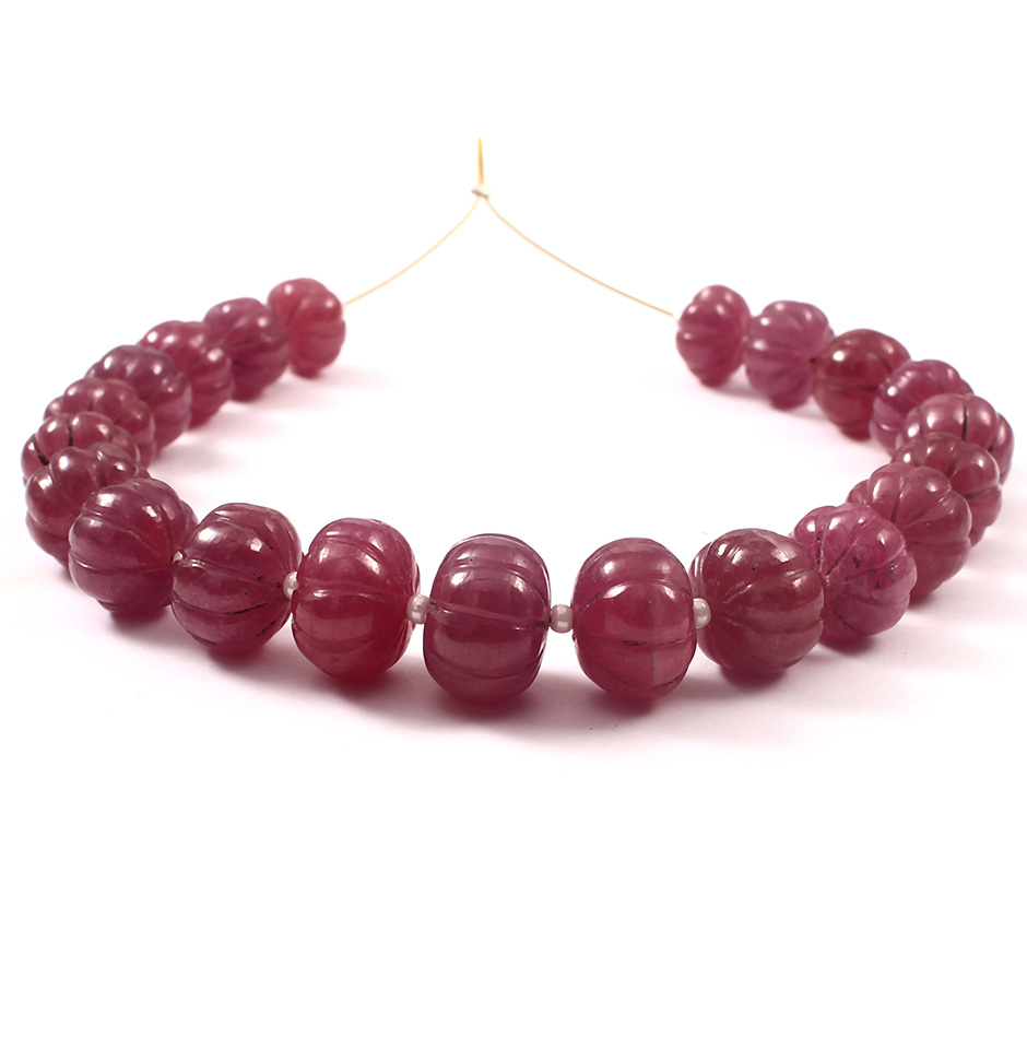 These 10 carved melon beads are very rare and extremely beautiful. They have a clear and clean body and look amazing on their neck. These high quality beads give 100% satisfaction. It is one of the most popularly sold stones in the jewellery industry because of its exquisite crimson hue and potent powers. This deep crimson colour immediately enchants the eye upon first glance. Ruby stones are typically mined naturally in many significant nations around the world, however they are frequently heated. It is one of the most prized gems in the world after diamonds and sapphires. The value of the stone increases with the degree of darkness.