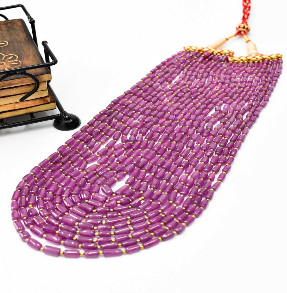 As a result of its vivid pinkish red hue and exquisite shine, ruby is one of our favorite gemstones. It is a highly well-liked gemstone that is worn on 40th wedding anniversaries, making it ideal for special occasions and gifts. One of the most well-known producers, suppliers, and exporters of gemstones and jewelry products is our company, Gudha Gems.For many types of jewelry manufacturing, tube-shaped ruby red beads are perfect. Buy amazing tube shape 1k solid yellow gold enamel bead with natural emerald & ruby stone of excellent quality and at the best price, from Gudha Gems. This multi-stranded Ruby necklace is a spectacular piece that belongs in your jewelry collection. Handpicked from a variety of graded gemstones, they are then artistically hand knotted to create a unique neckpiece. Every outfit—from long gowns to Indian wear, from semi-formals to sarees—looks better with the ruby beads necklace. You can wear these asymmetrical ruby multi-strands to any occasion to draw attention to yourself.