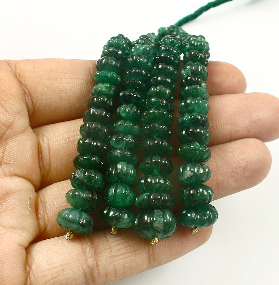 Whether you're looking to create a statement piece of jewelry or add a touch of elegance to a more understated design, these beads have you covered.These Vintage Zambian Emerald Pumpkin Beads offer a unique opportunity to own a piece of history, as they are vintage and carry with them a sense of charm and character. The durability and longevity of these beads also make them a wise investment, ensuring that they will withstand the test of time and retain their beauty for years to come. These Zambian Emerald Pumpkin Beads from wholesale manufacturer from Jaipur are not only visually stunning but are also believed to have a variety of metaphysical properties.In conclusion, the Vintage Zambian Emerald Pumpkin Beads with a carat weight of 260 cts, originating from the Brazil Mines and sourced by the Gudha Gems Company, are a truly remarkable gemstone bunch. They offer endless opportunities for creative and personalized jewelry designs. Additionally, their durability and metaphysical properties make them a wise investment for those seeking to add a touch of elegance and meaning to their collection.