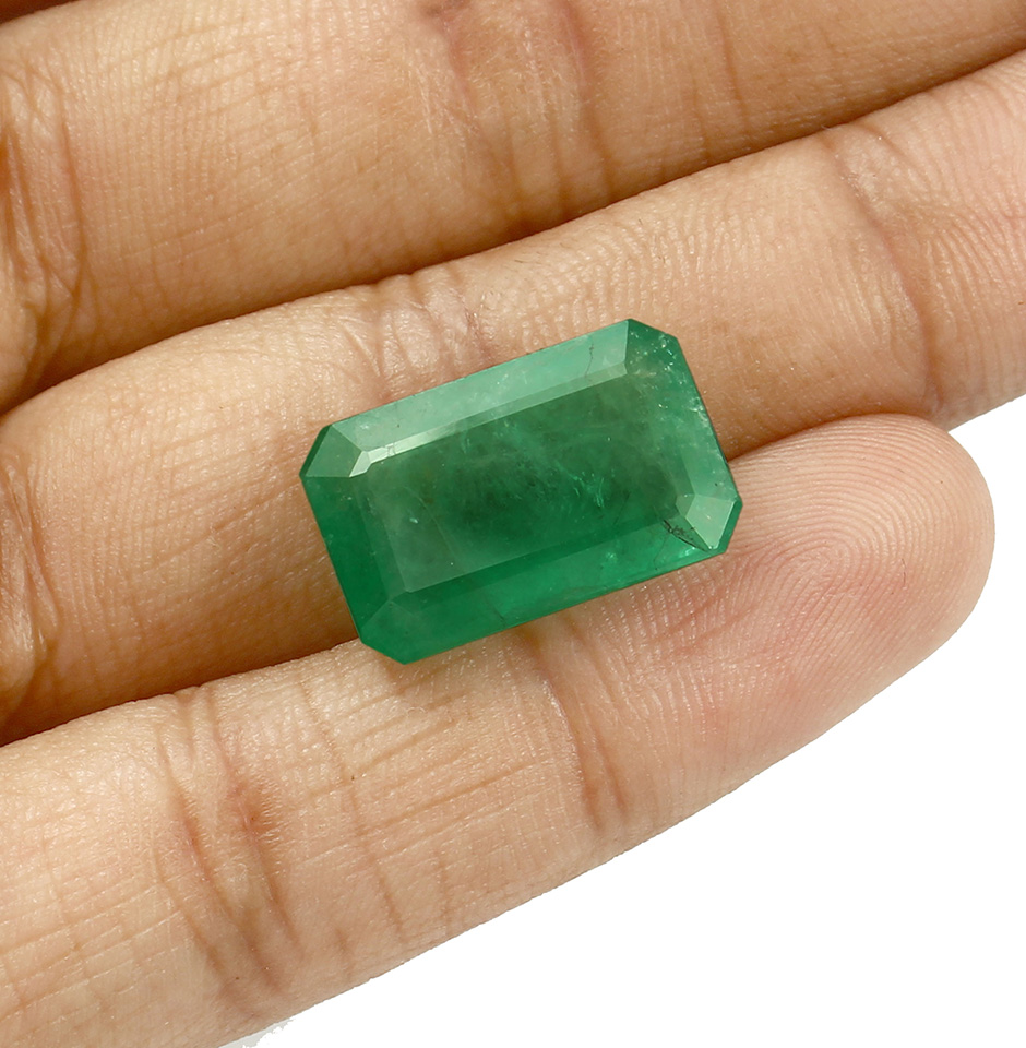 Introducing the Zambia Mined Loose Emerald with a remarkable carat weight of 17.5 carats, exclusively cut in the emerald shape from Gudha Gems Company,online gemstone supplier in JaipurThis exquisite piece is a true masterpiece of nature, boasting an impressive size of 14 mm x 8 mm x 4.8 mm, making it a true showstopper in any jewelry piece it adorns.The emerald's green color is nothing short of stunning, with a deep and rich hue that is characteristic of Zambian emeralds. This particular stone's color is a product of the unique geological conditions that exist within Zambia, with the country being renowned for producing some of the finest quality emeralds in the world.