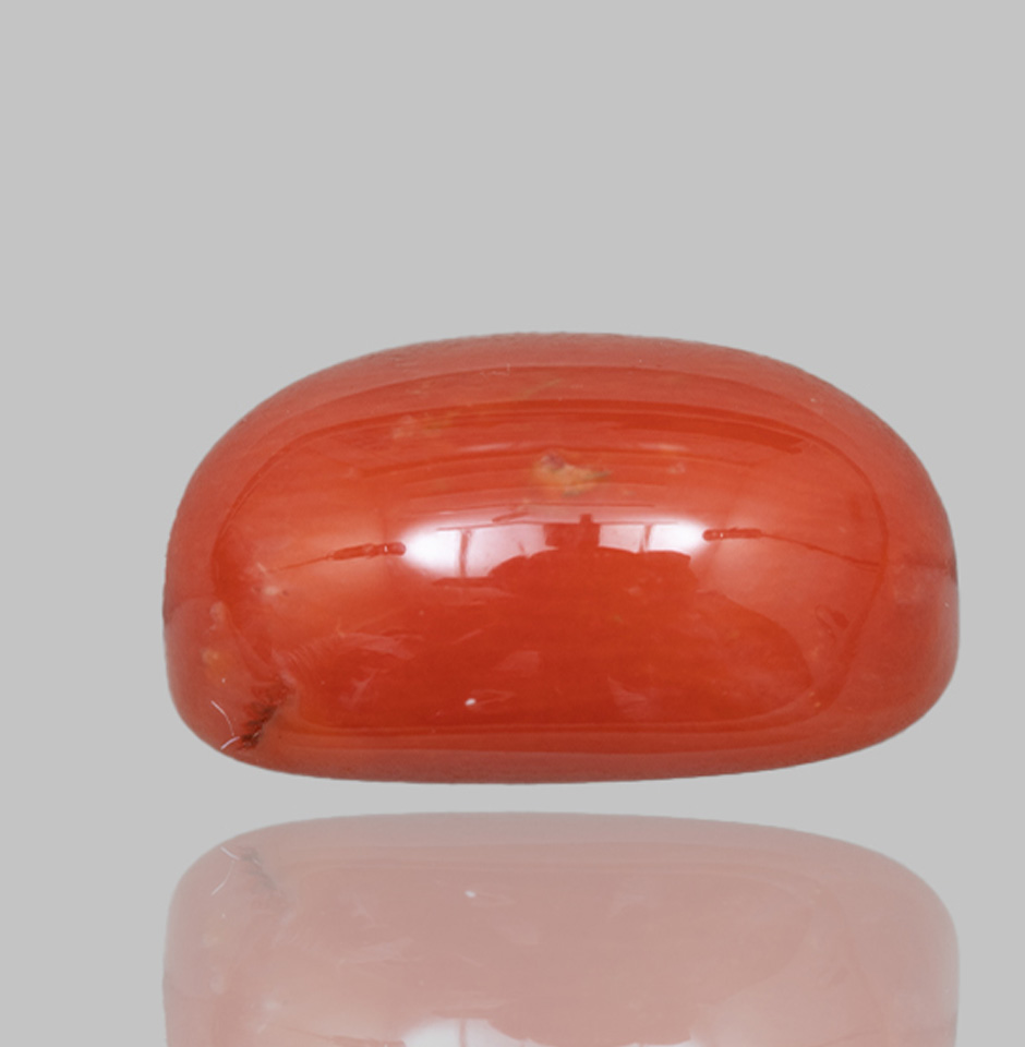The 5.39-carat NATURAL RED CORAL is the ideal size for crafting gorgeous pieces of jewelry. The gemstone's oval form lends a traditional touch to any design, making it a popular option for designing classic pieces of jewelry. Its polished appearance brings forth the gemstone's inherent brilliance and reveals its rich, vivid orange hue.