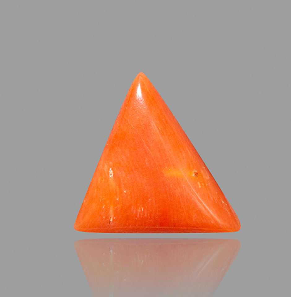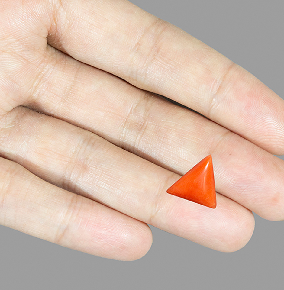 This 6.04-carat natural red coral is a magnificent gemstone. It has an eye-catching orange hue that will draw attention to it and provide a pop of colour to any jewellery design. The stone's distinctive trillion forms give any piece of jewellery a contemporary and fashionable touch, making it a great option for jewellery makers looking to make a statement.