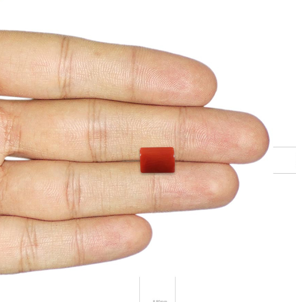 The gemstone's peculiar cushion form makes it the perfect material for constructing innovative and cutting-edge jewellery designs. The stone's vivid hue draws attention and gives every item of jewellery a strong, fiery feel. The coral has a polished finish, which enhances its inherent brilliance and sparkle.